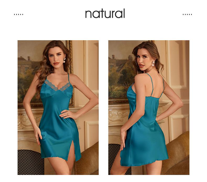 Yaoting Amazon Nuevo Pijama Sexy para Mujer Verano Encaje Camisón de Tirantes Seda de Hielo Encaje Fino Pijama 21777