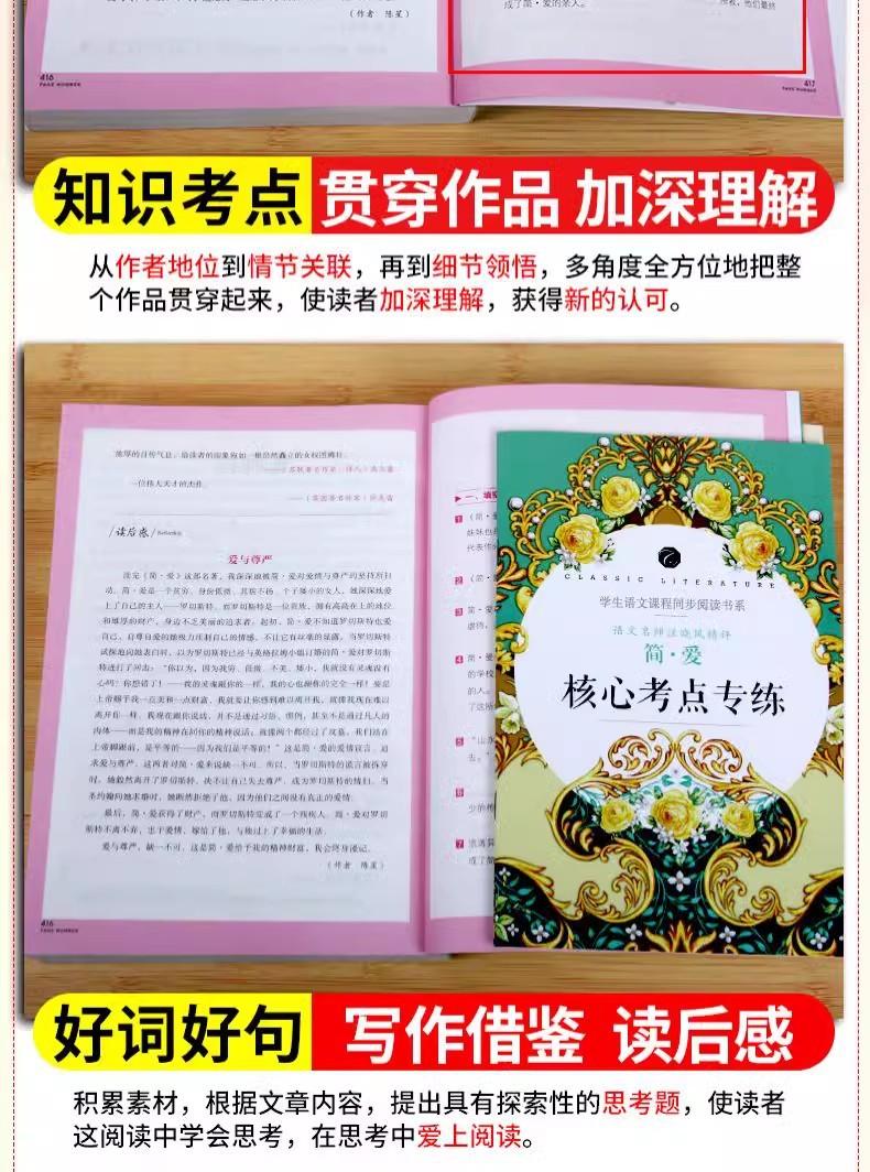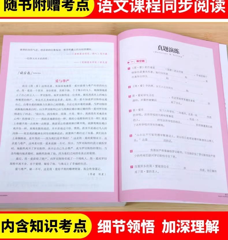 Jane Eyre, novela literaria imprescindible para estudiantes de secundaria, reseña de Wang Xiaofeng, guía para el maestro, comentario con puntos de examen, preguntas de examen, lectura sin barreras