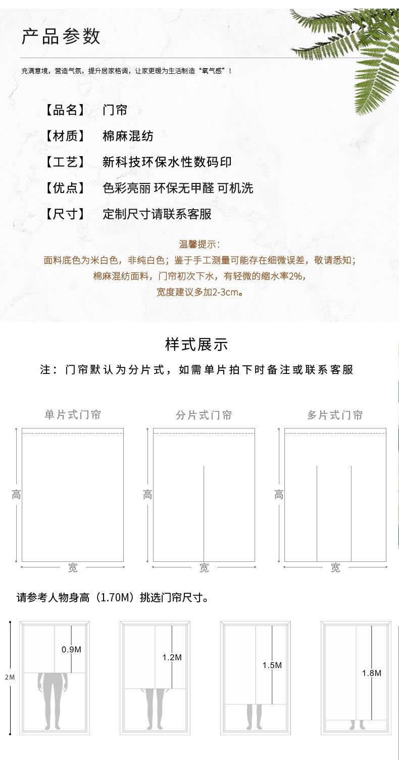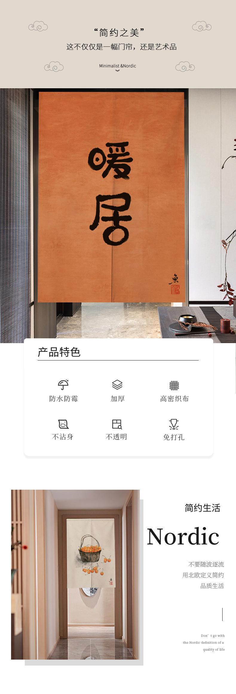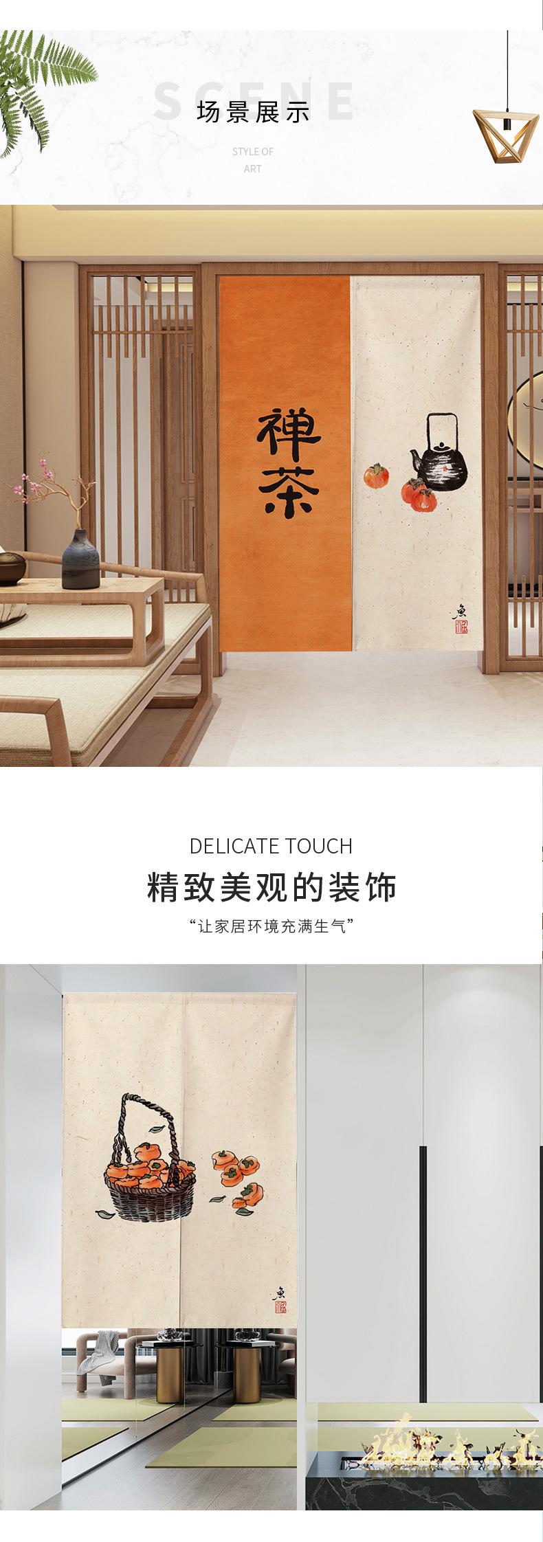 Cortina de tela estilo chino para puerta divisoria, sin perforaciones, para dormitorio, cocina, baño, refugio, media cortina colgante