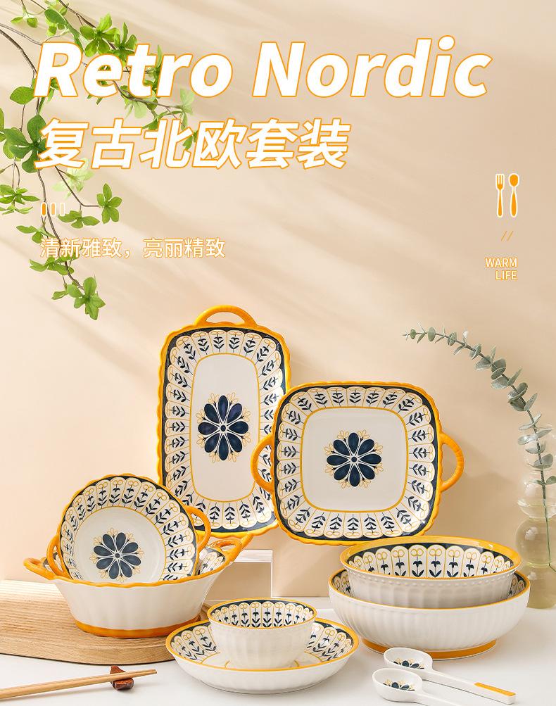 Compra Set de Tazón y Plato de Alto Valor Estilo Japonés Tazones de Cerámica Tazones de Sopa Platos para Dumplings Tazones para Arroz Vajilla de Cerámica para el Hogar al por mayor en Joom.pro