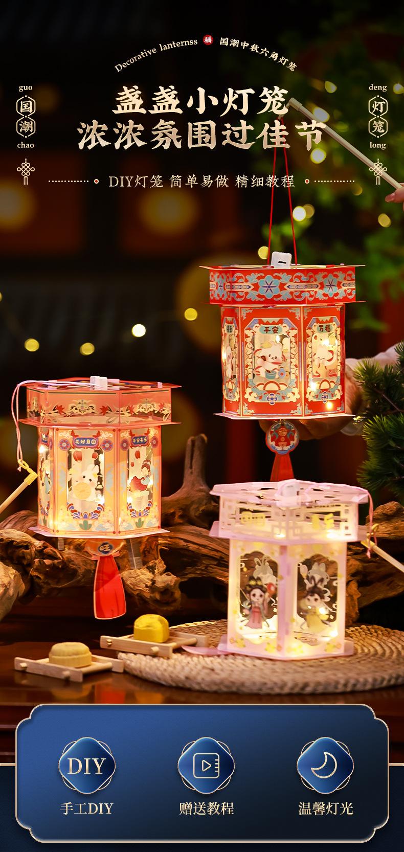 Linterna luminosa de proyección para el Festival del Medio Otoño, linterna giratoria para niños, paquete de material de bricolaje hecho a mano, linterna portátil LED, puesto al por mayor