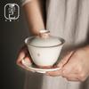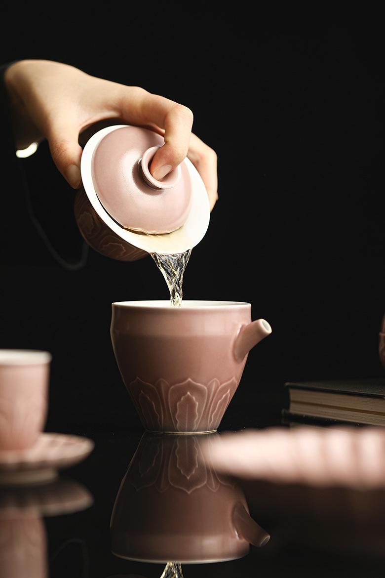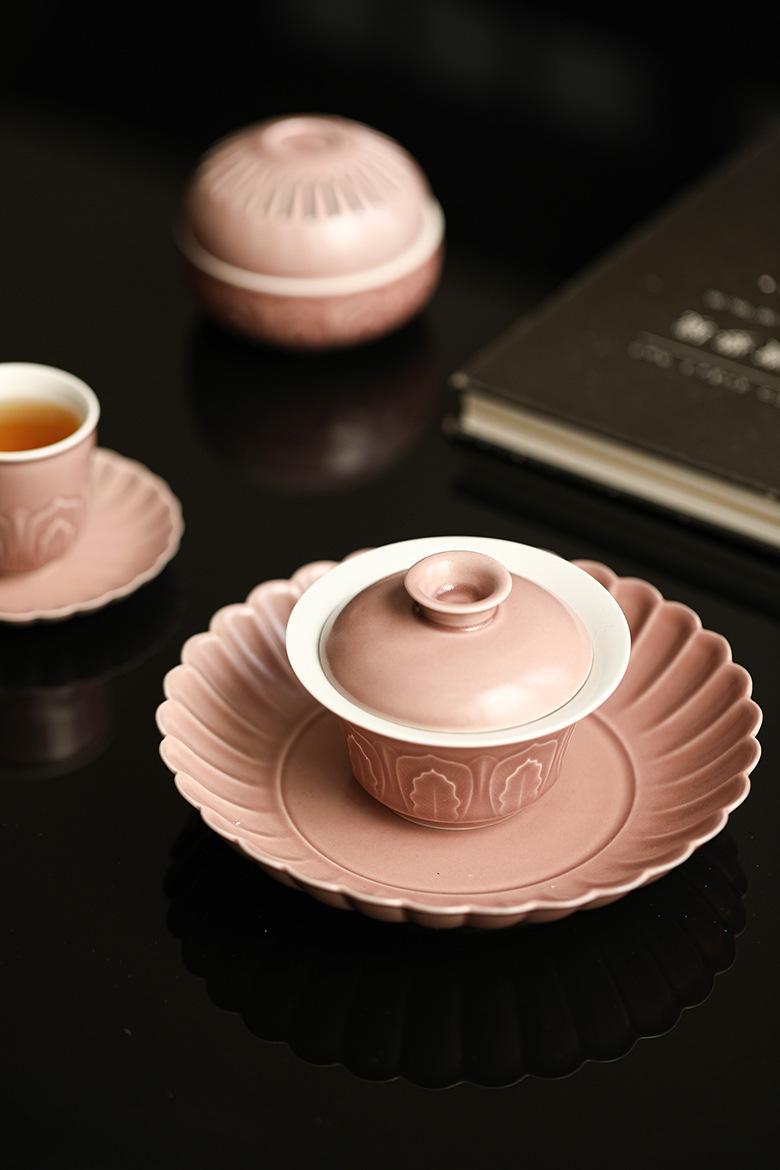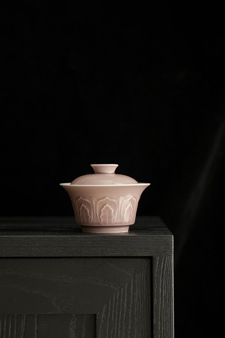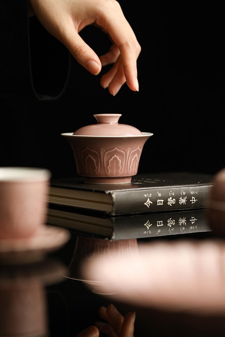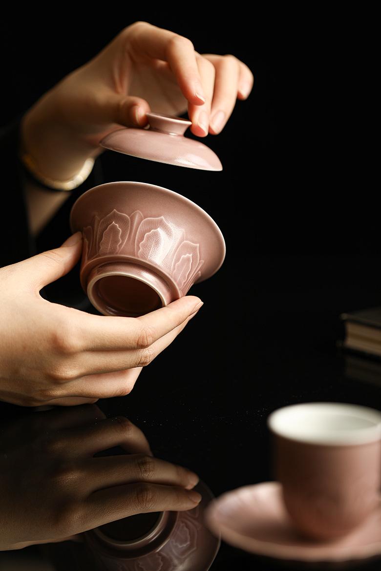 Cuenco de cerámica con diseño de pétalos de loto de Yang Zihong Ru, esmaltado, con cubierta de Ercai, juego de té de Kung Fu, con patrón de cerámica antigua