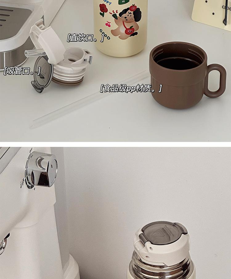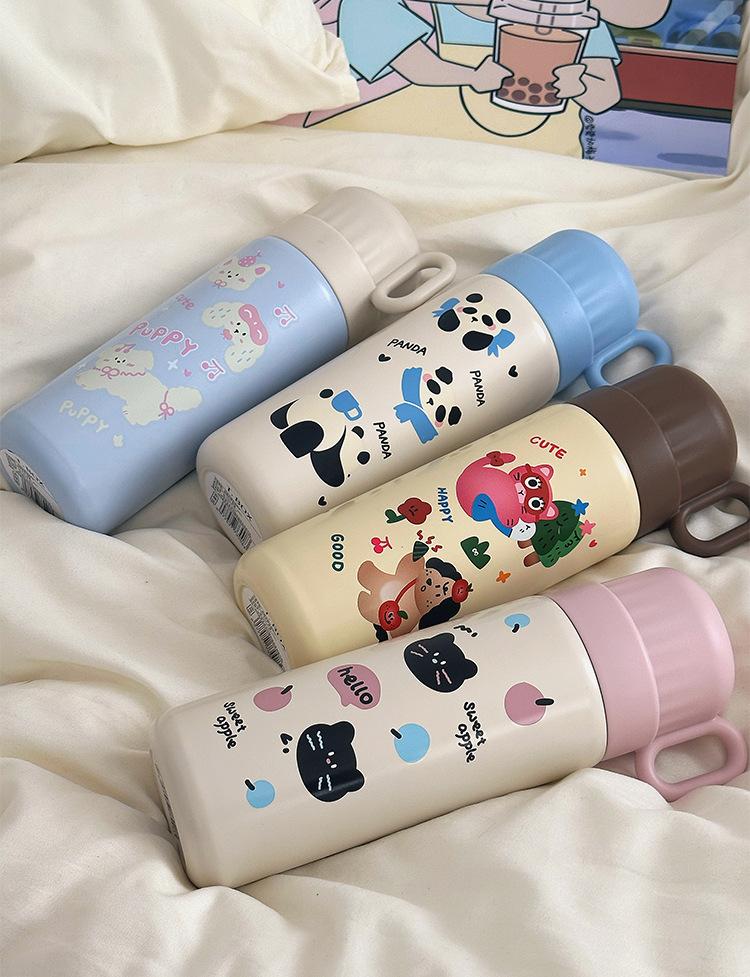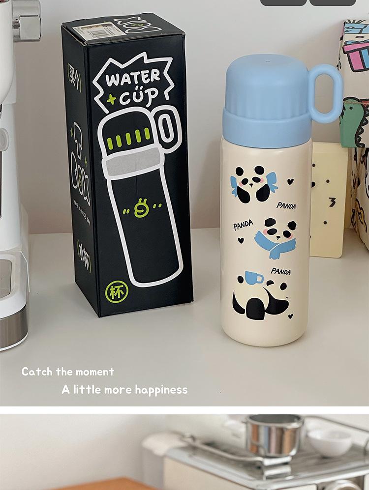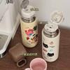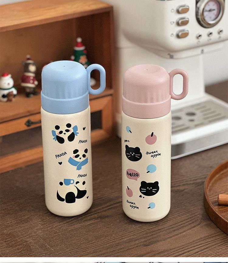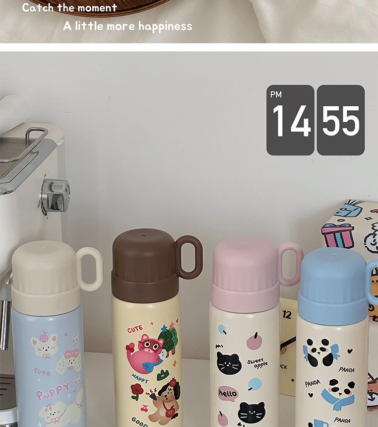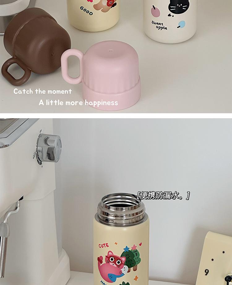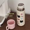 Nueva taza de agua con dibujos animados para estudiantes, de acero inoxidable, portátil, para niñas, para la escuela, al aire libre, con una sola tapa, taza de doble uso