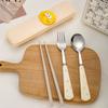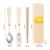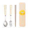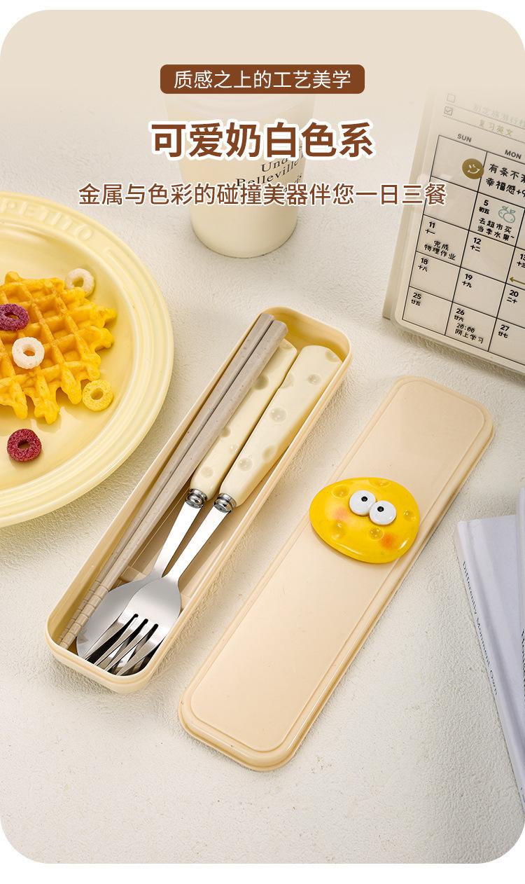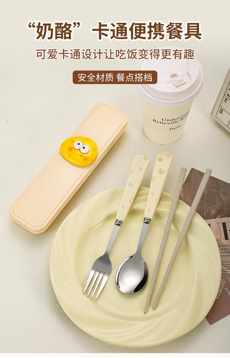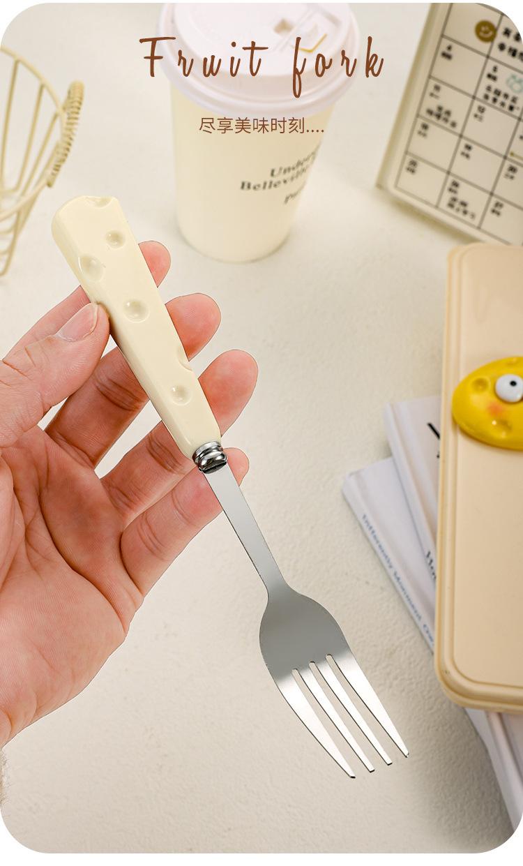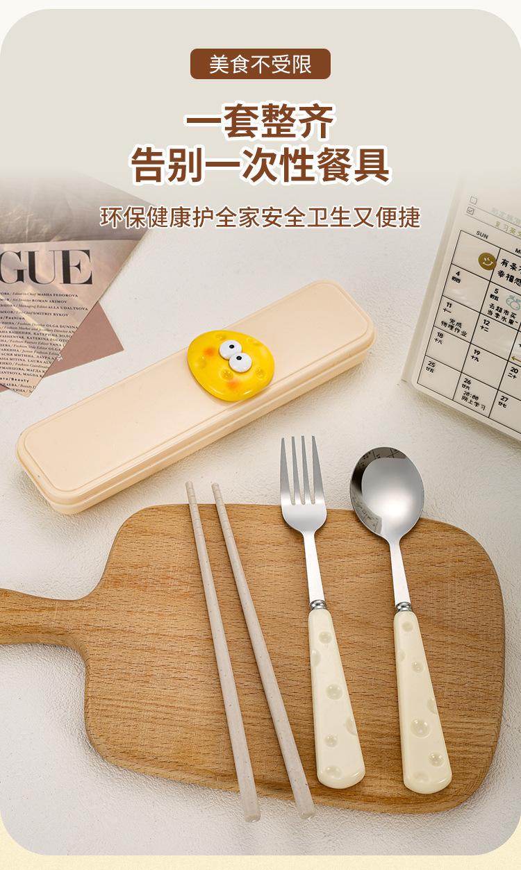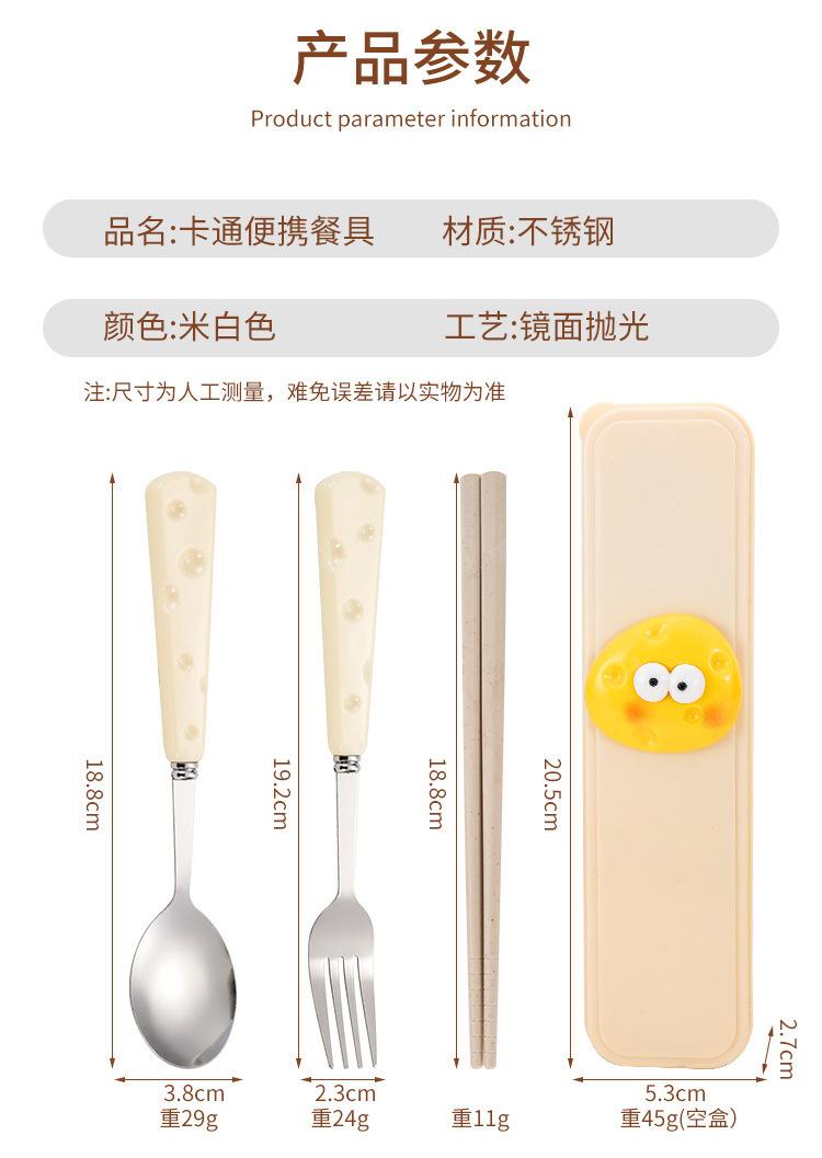 Juego de tres piezas de cuchara, tenedor y palillos de queso con diseño popular y bonito para estudiantes y niños, caja de almacenamiento de vajilla portátil.