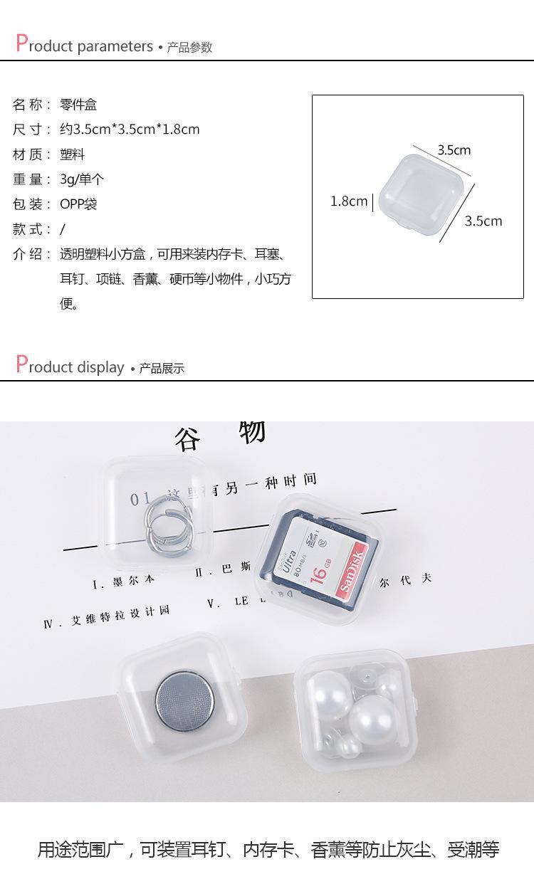 Caja de Plástico Caja Transparente Caja Cuadrada Pequeña Caja de Joyería Almacenamiento Almacenamiento de Joyería Caja al por Mayor Caja para Tapones para los Oídos Caja Pequeña de Plástico