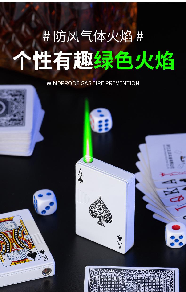 Encendedor inflable creativo de metal a prueba de viento con diseño de póker de celebrante de Internet con explosiones creativas de TikTok, encendedor personalizado de fuego verde