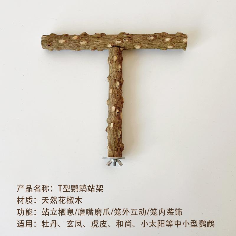 Soporte para loro Zanthoxylum bungeanum madera palo garra interactivo multifuncional soporte rama palo forma de T soporte poste tronco juguete para loro