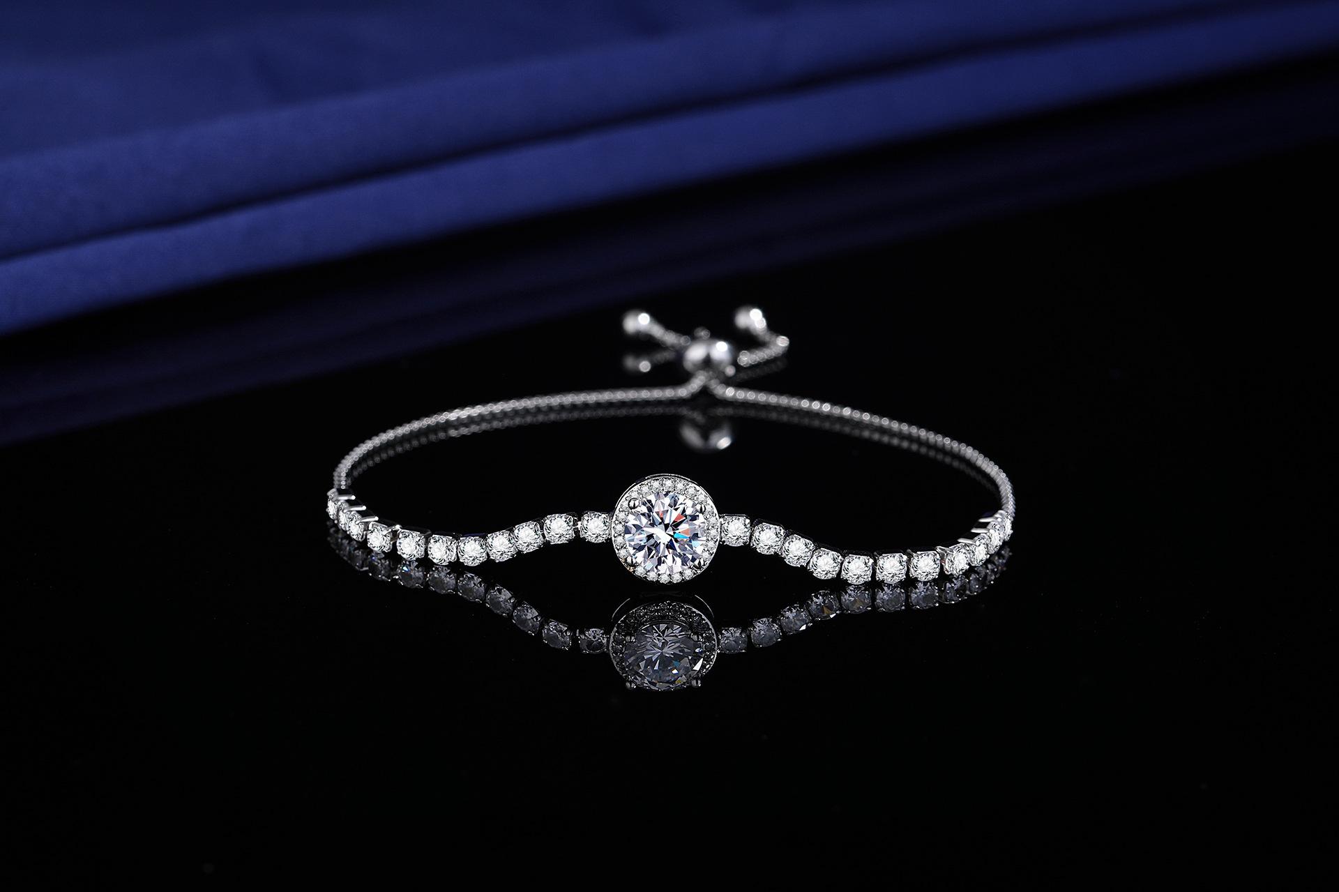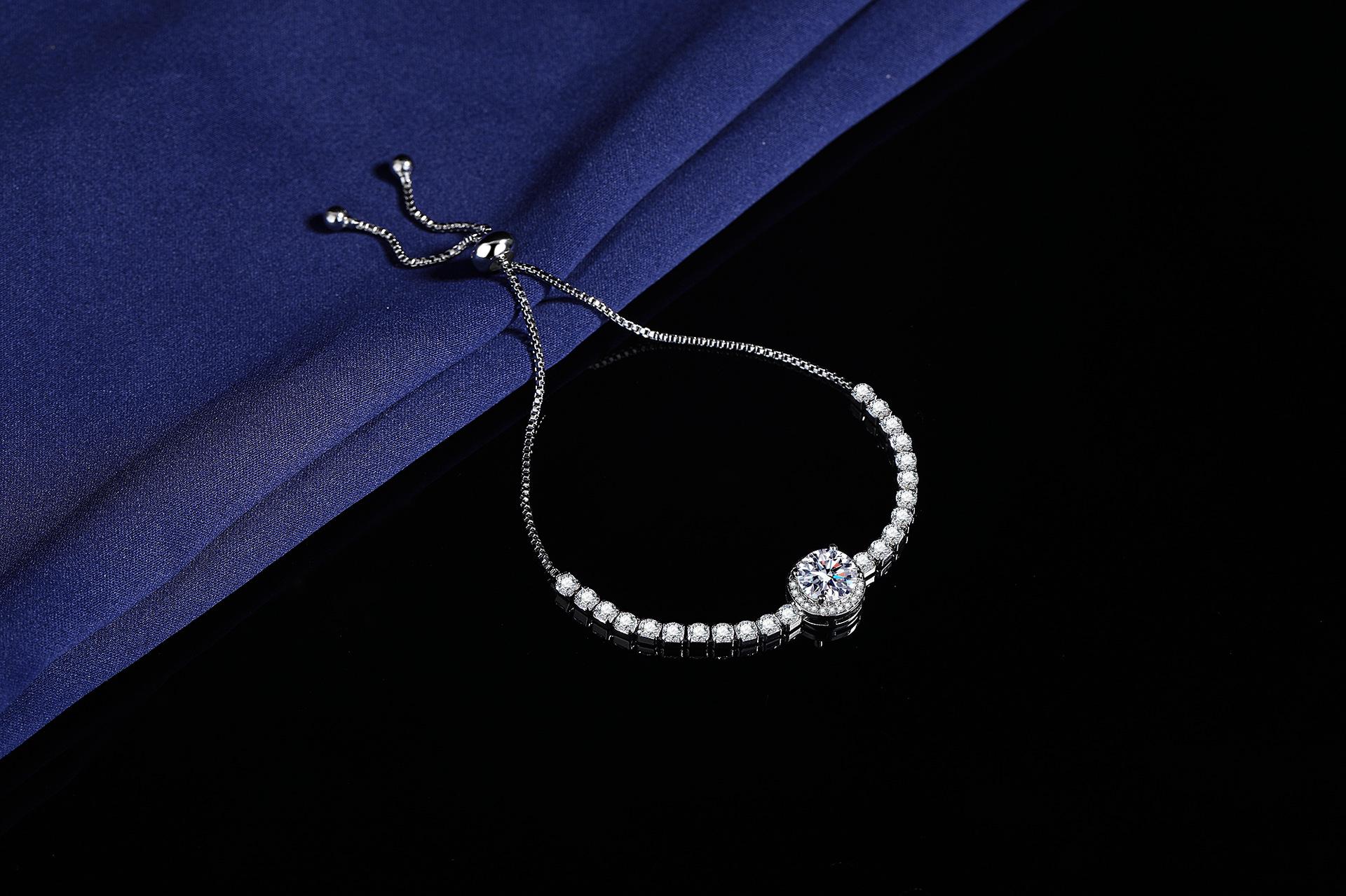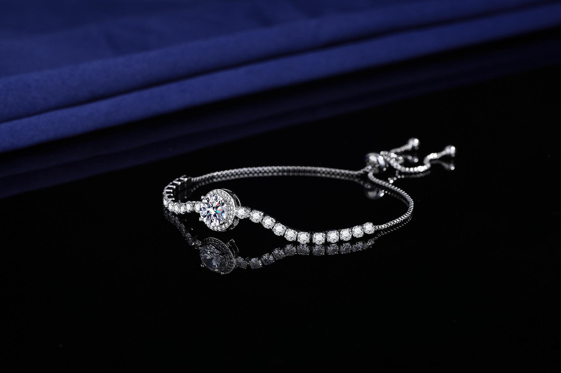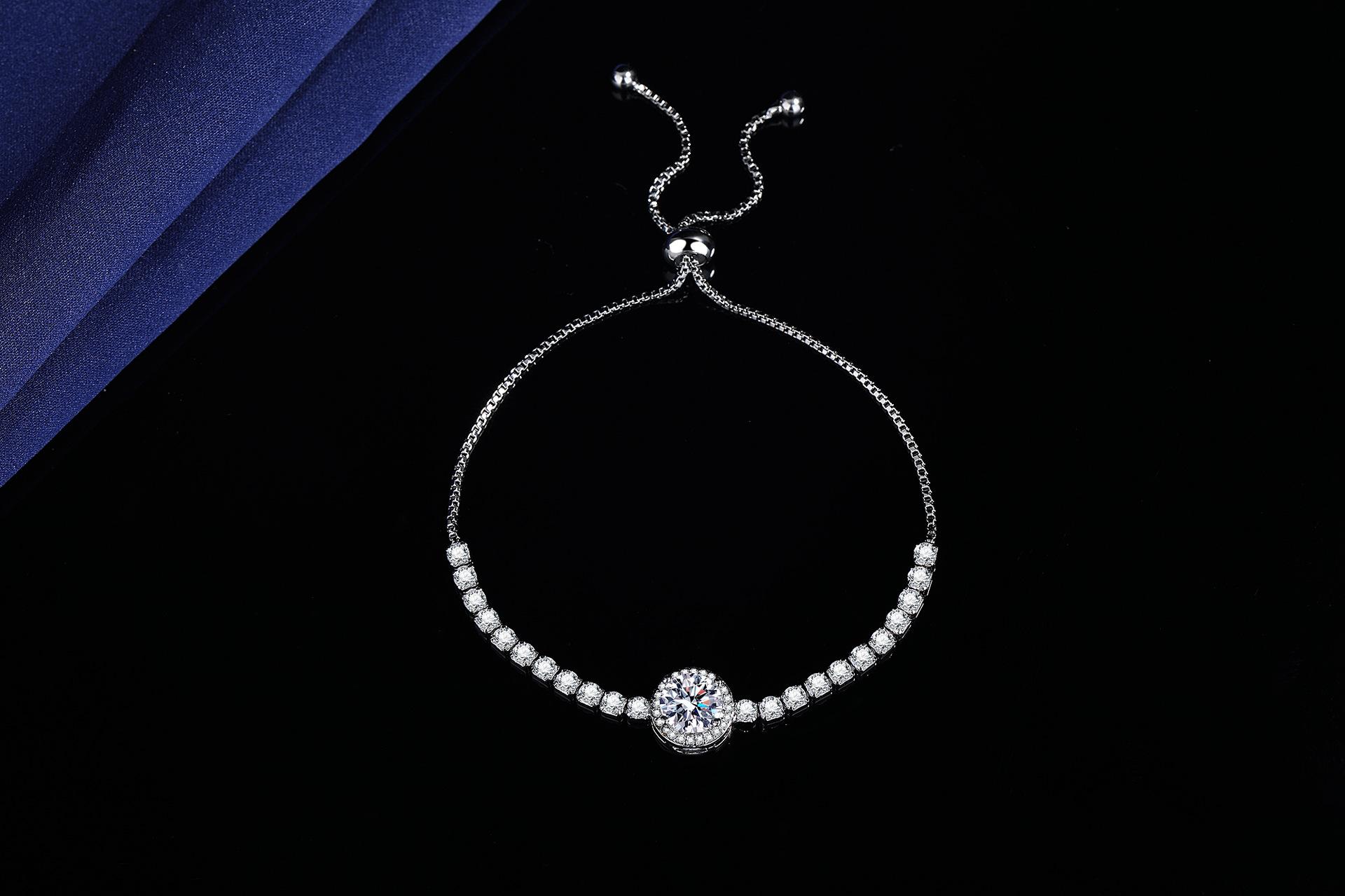 Pulsera francesa extraíble de 2 quilates con imitación de moissanita y circonita redonda, pulsera personalizada para mujer, ideal para combinar con todo.
