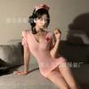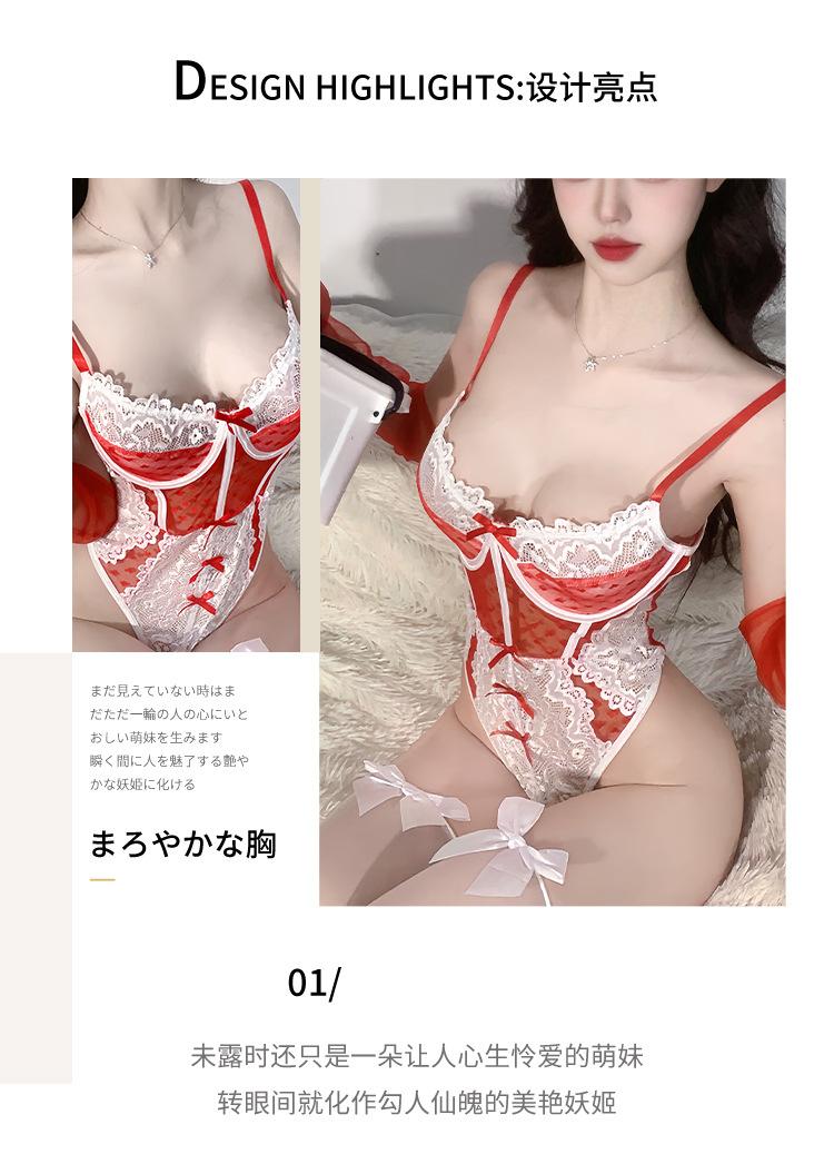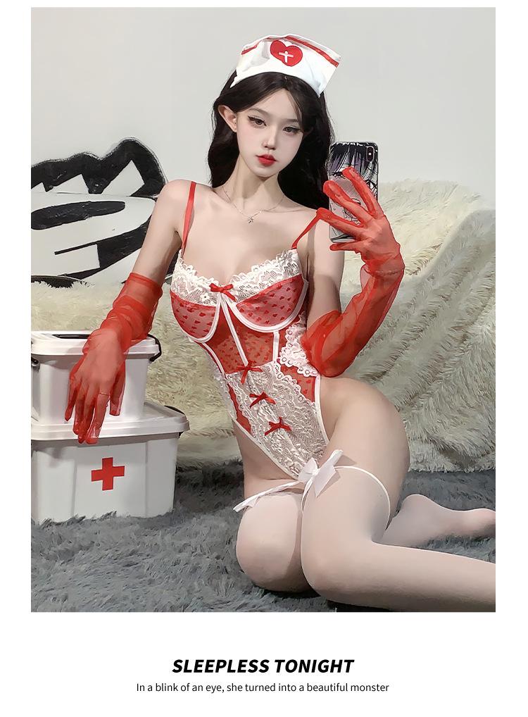 Guoyun Lencería Sexy, Uniforme de Enfermera Deseo Puro, Corsé con Lazo de Encaje, Tentación Sexy Deseo Puro, Francés de Una Pieza
