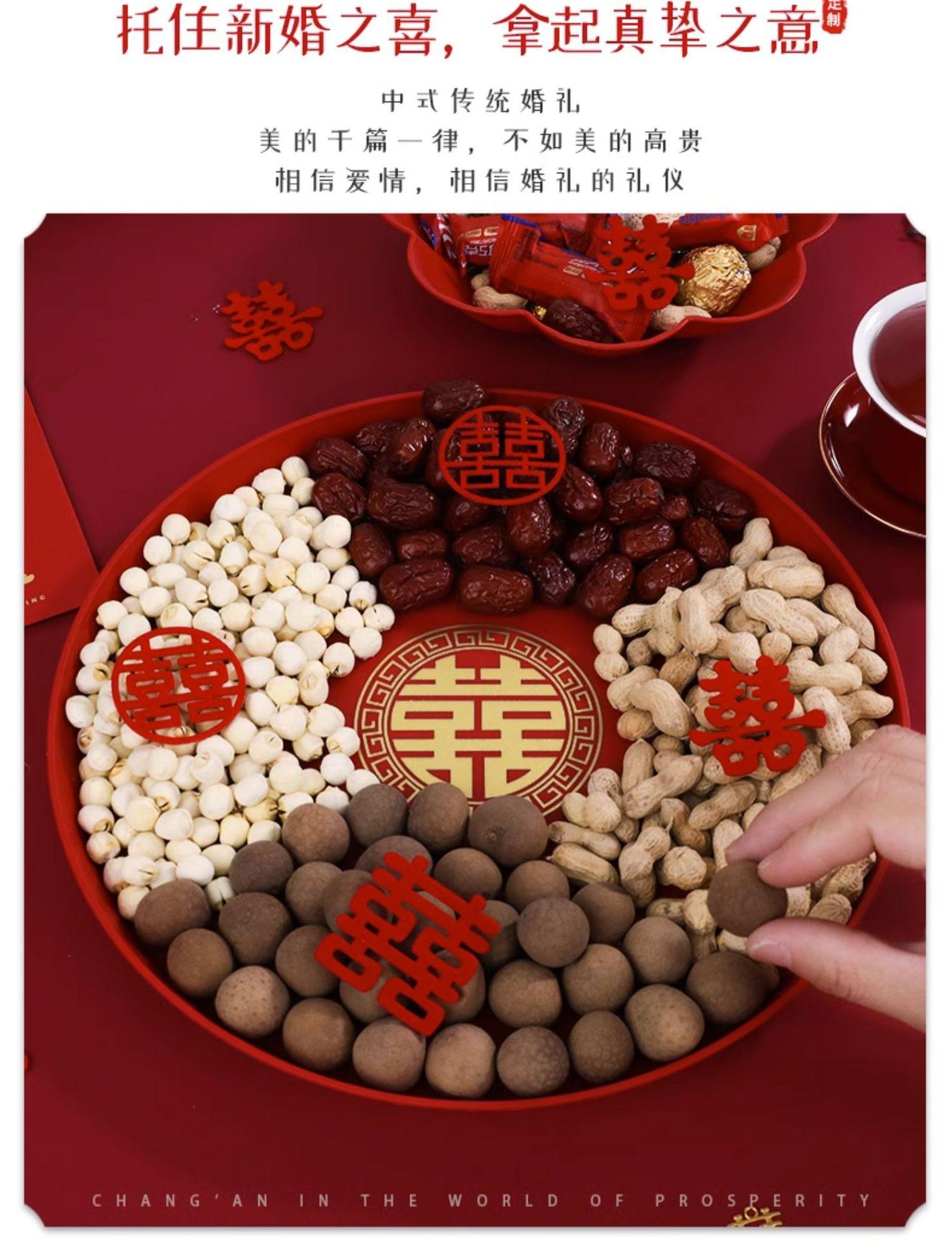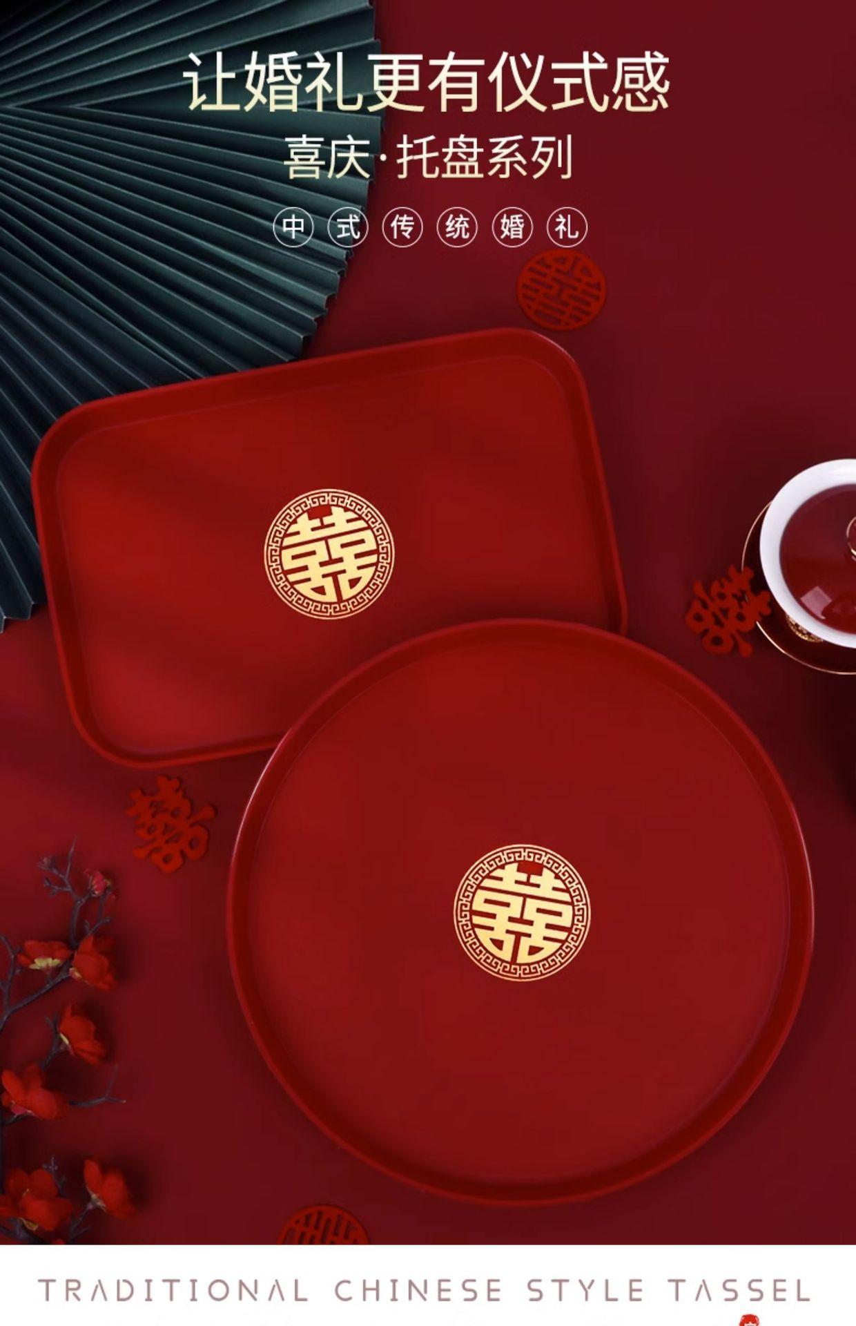 Yuanxi_round tray [diameter 33cm]], Yuanxi_square tray [38.5*26.5cm]], Happy Wedding_Color Flower Wine Red Fru...