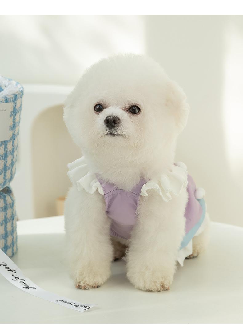 Falda de princesa de doble capa con encaje transpirable y flores para cachorros en primavera y verano, peluche para gatos, ropa para mascotas de tamaño pequeño y mediano.