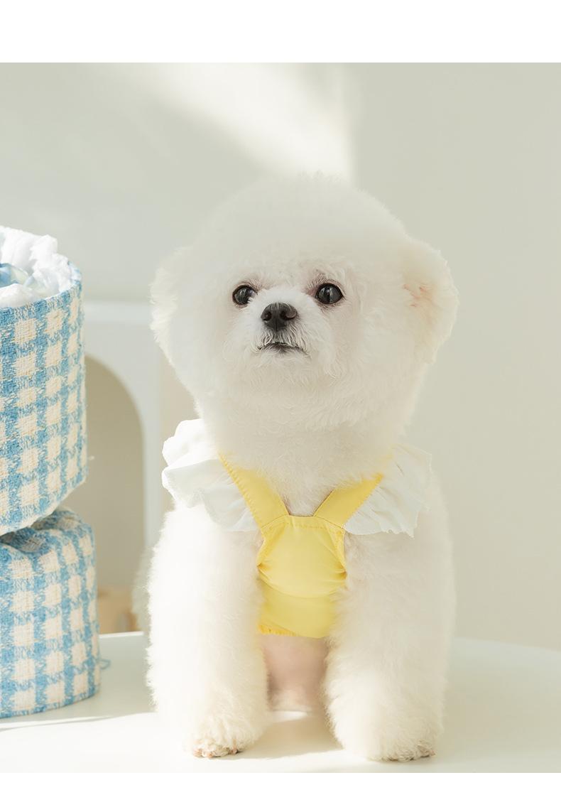 Chaleco de tracción transpirable con parche de oso hueco azul cielo para perros pequeños Bichon Frise, ropa de verano para perros de dos patas