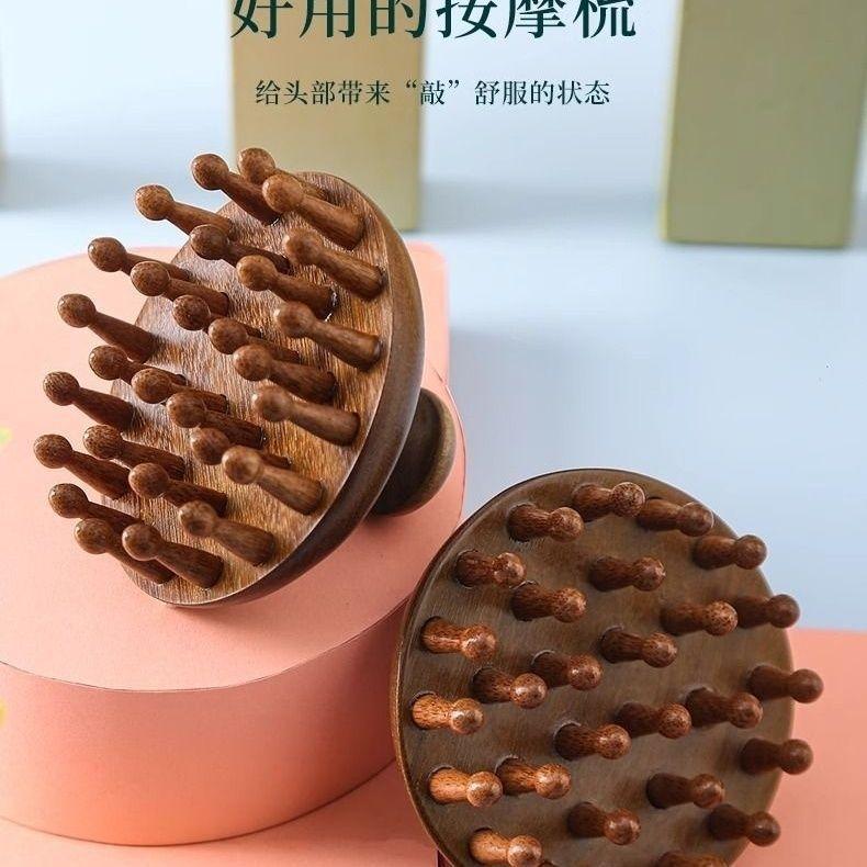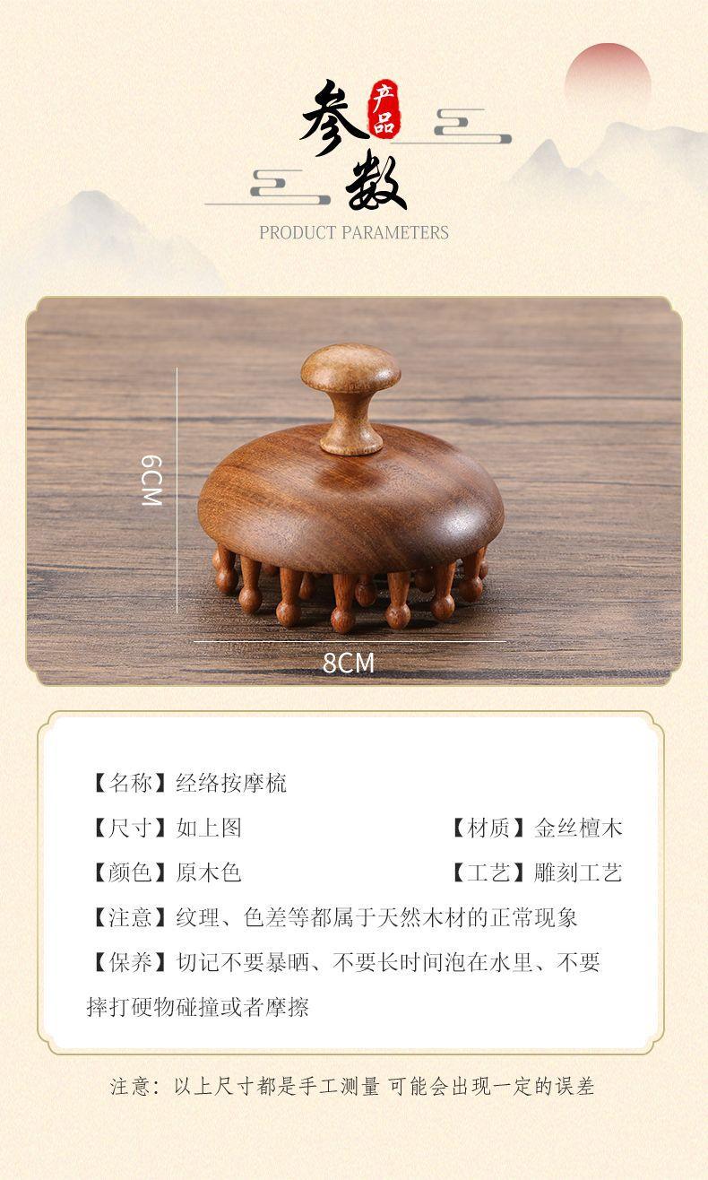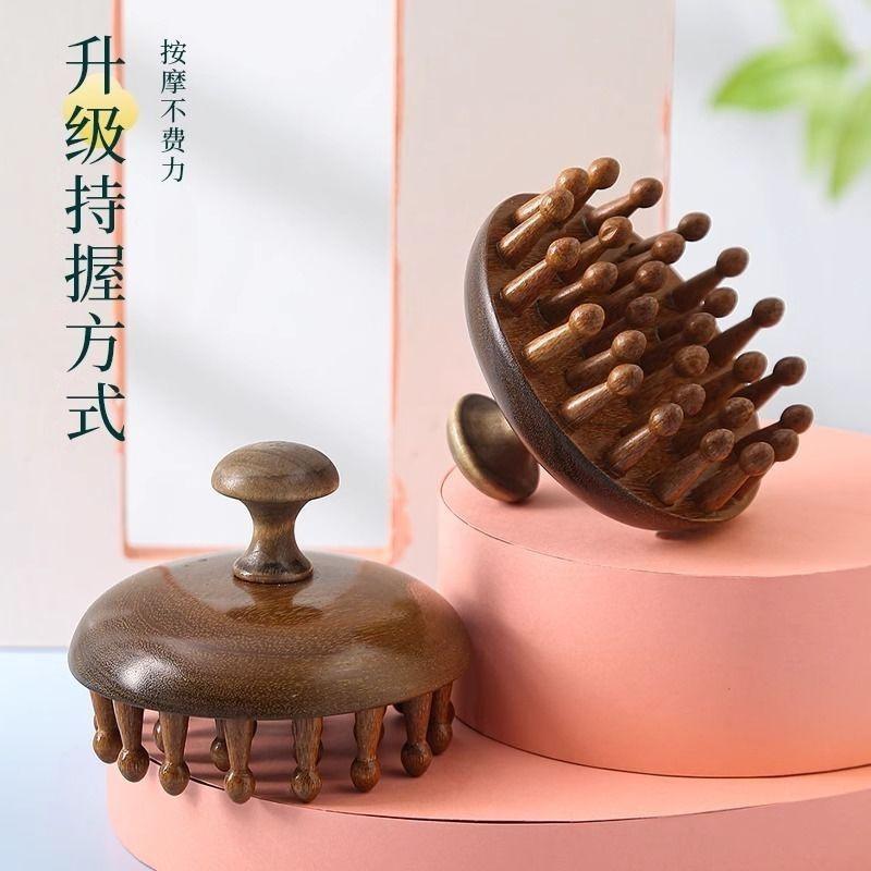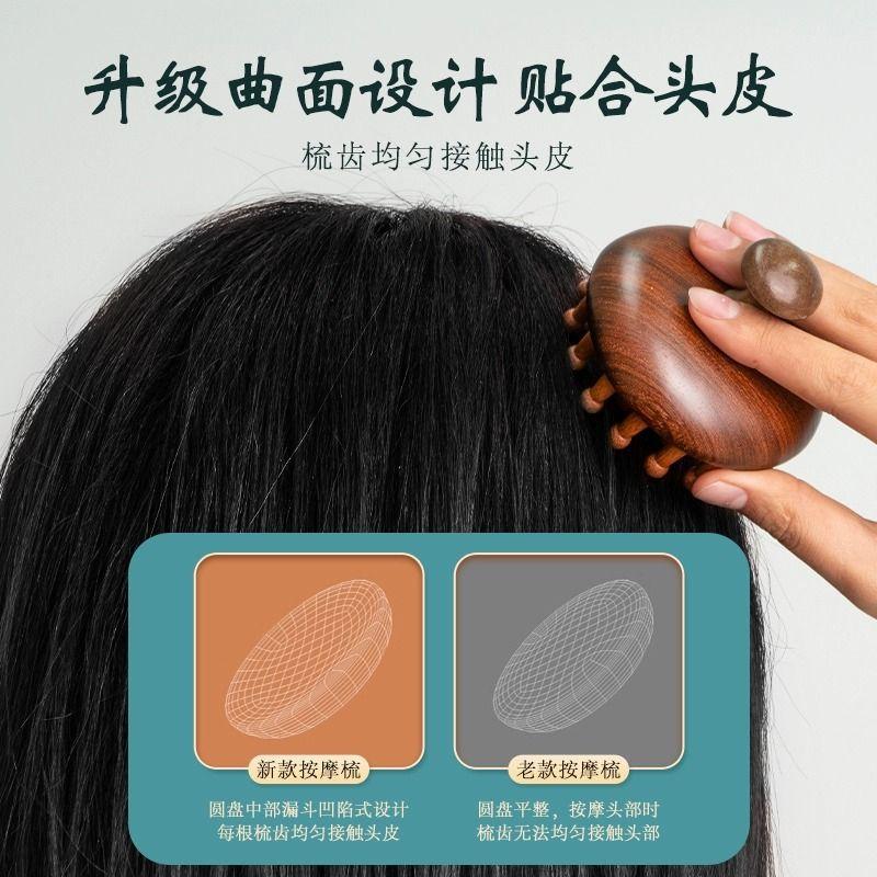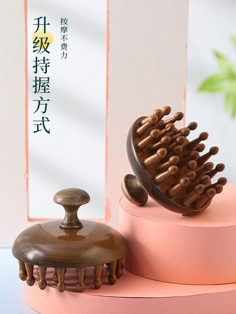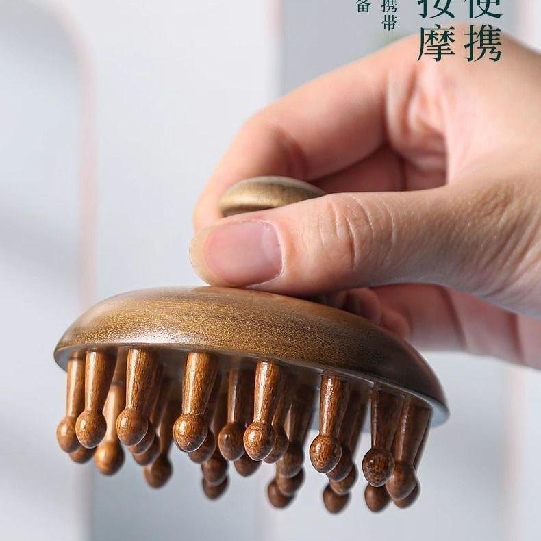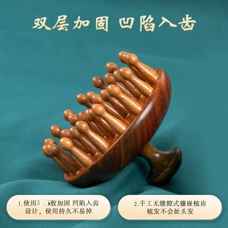 Peine de masaje multidiente de sándalo dorado, cabezal de 28 dientes, peine de sándalo meridiano, peine de masaje capilar de sándalo verde