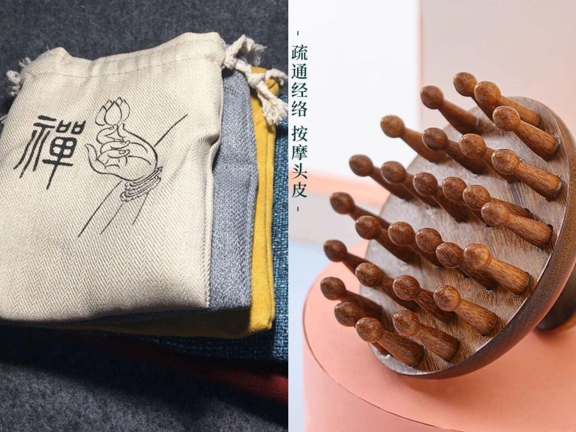 Golden green sandalwood 28-tooth massage comb, Golden green sandalwood 28 comb + linen storage bag, Golden gre...