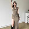 Vestido a cuadros sin mangas de cintura alta ajustado de color sólido para mujer, estilo europeo y americano, estilo transfronterizo de verano 2024