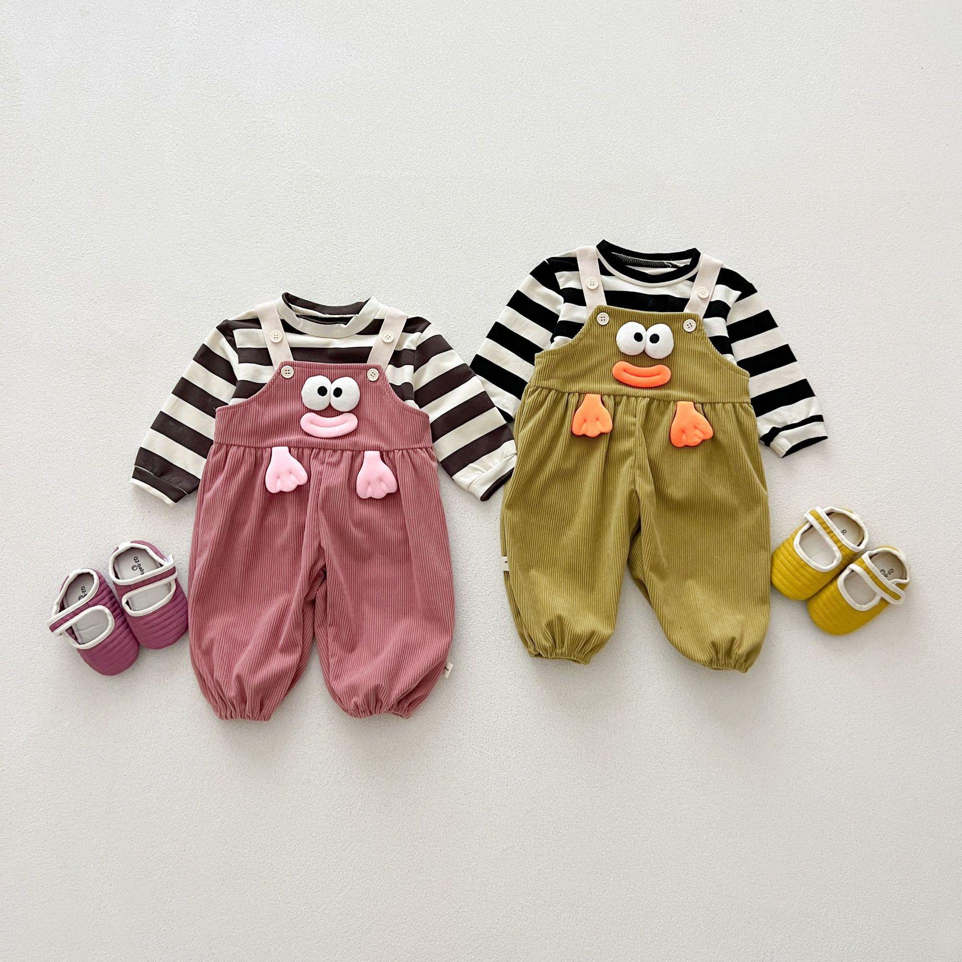 Ropa de bebé, ropa de otoño, mono de bebé para niños y niñas, linda muñeca tridimensional, correa para escalar, ropa para salir, bolsa, ropa gruesa