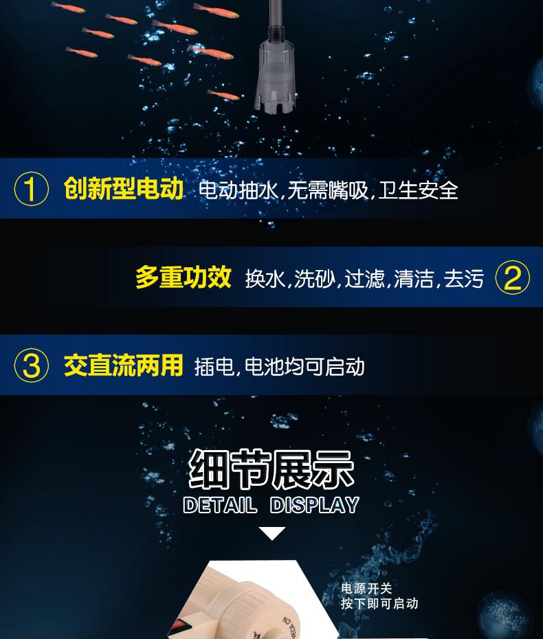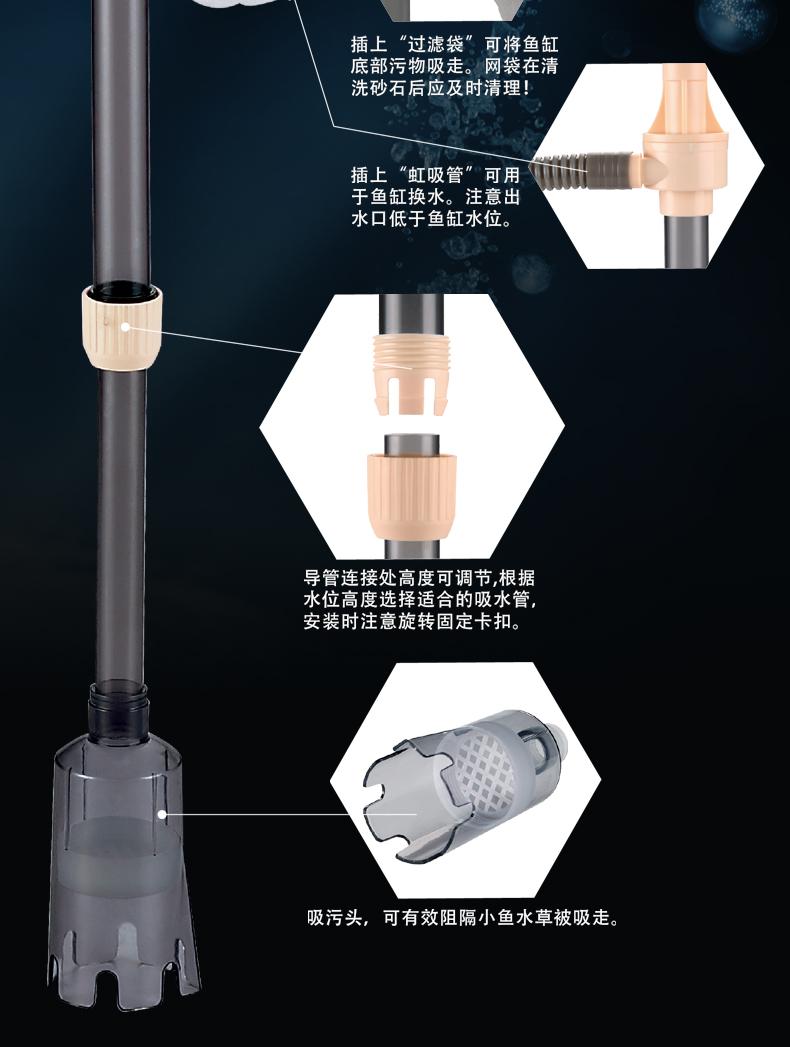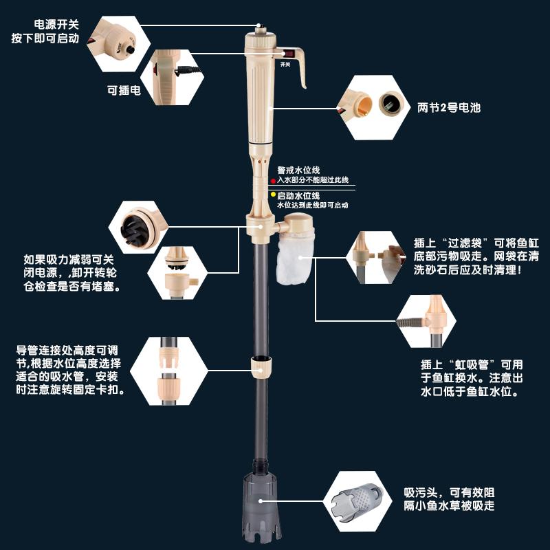 Queridos,AS-615A/BLa función principal del sifón para arena es drenar el acuario, filtrar la suciedad del acuario y limpiar el acuario. No tiene la función de añadir agua al acuario a un nivel de agua bajo.
