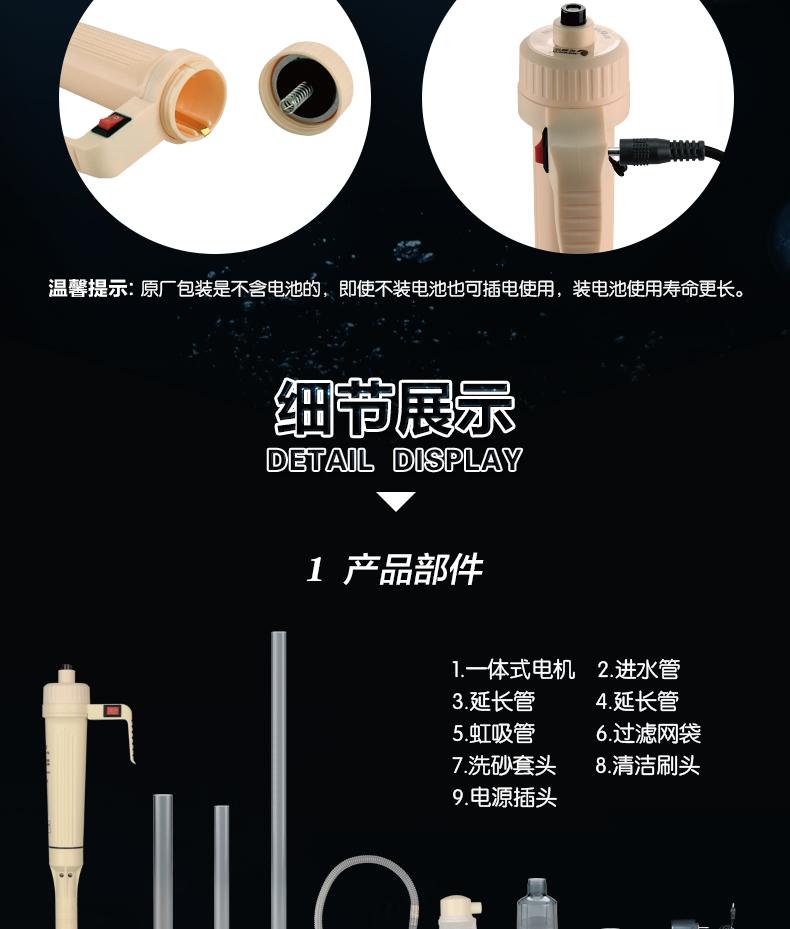 Estimado, la verdad es que no es pequeño. Quizás no haya quitado el cabezal de lavado de arena n.° 7 al aspirar excrementos de pescado. La función del cabezal de lavado de arena es dividir la fuerza de succión, lo que evita eficazmente que la arena sea aspirada.Nota: La arena de mar y la arena fina no son aptas para su uso.); Se recomienda quitar el accesorio No. 7, el cabezal de lavado de arena, al succionar excremento de pescado, y usar solo el tubo para succionarlo directamente