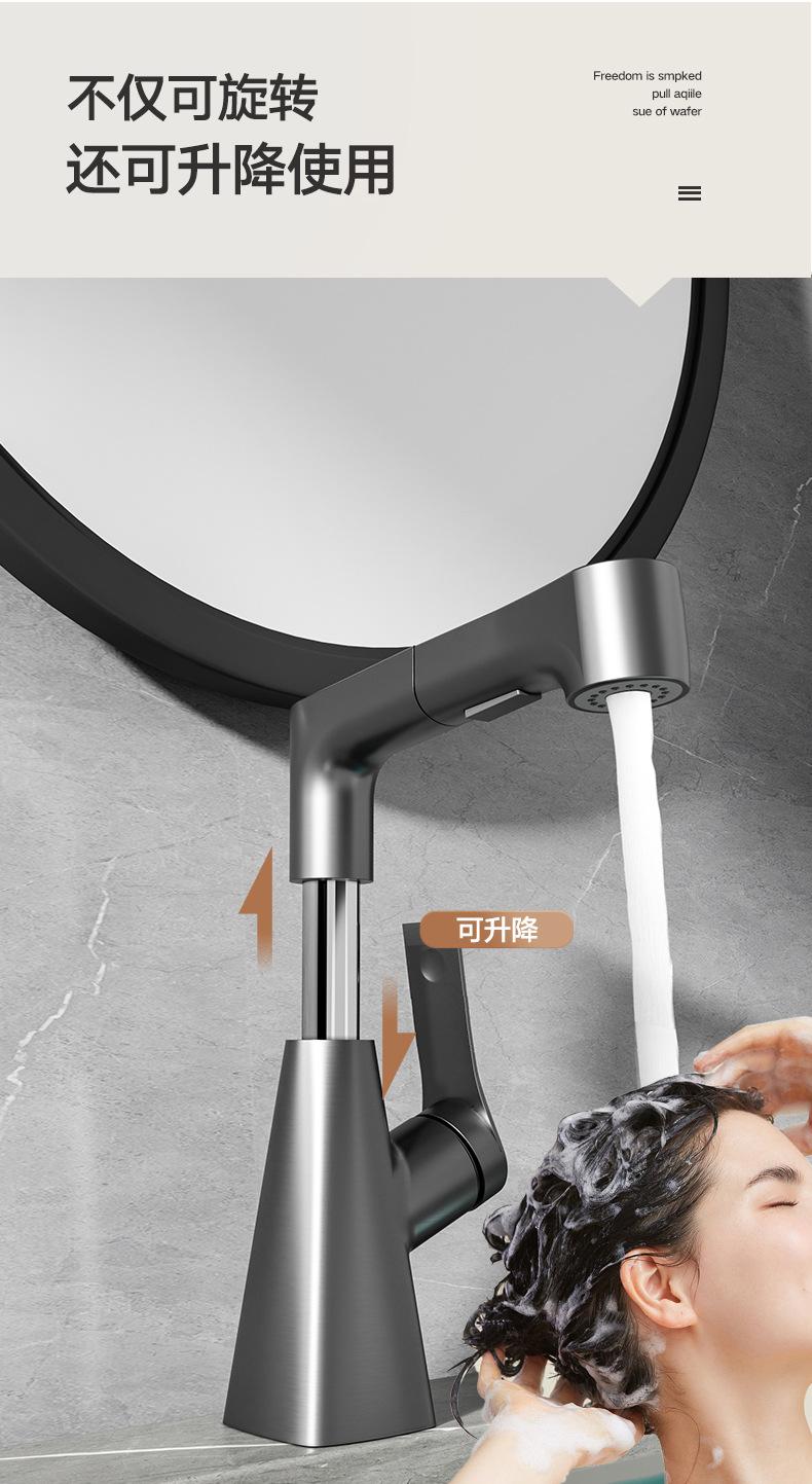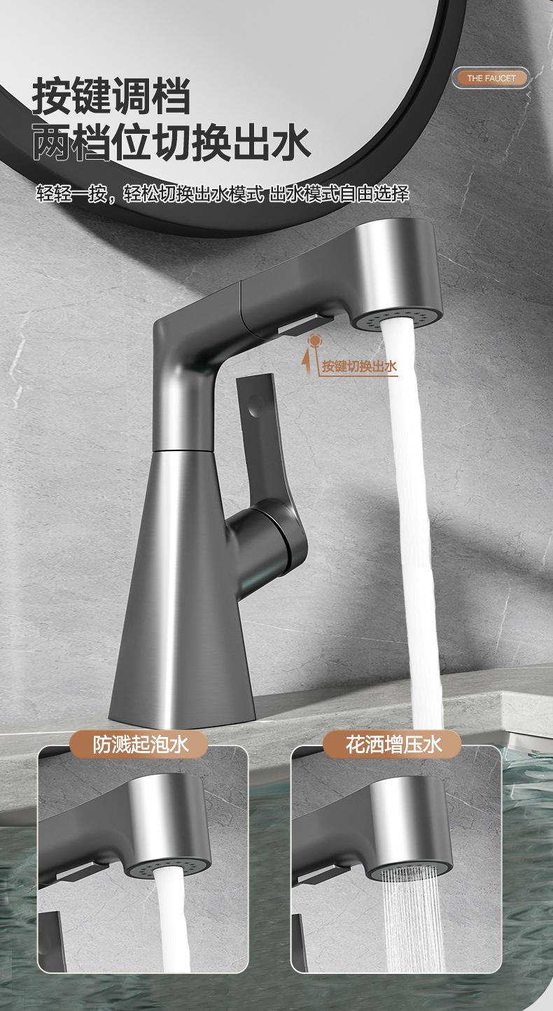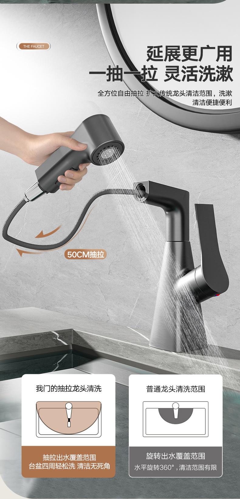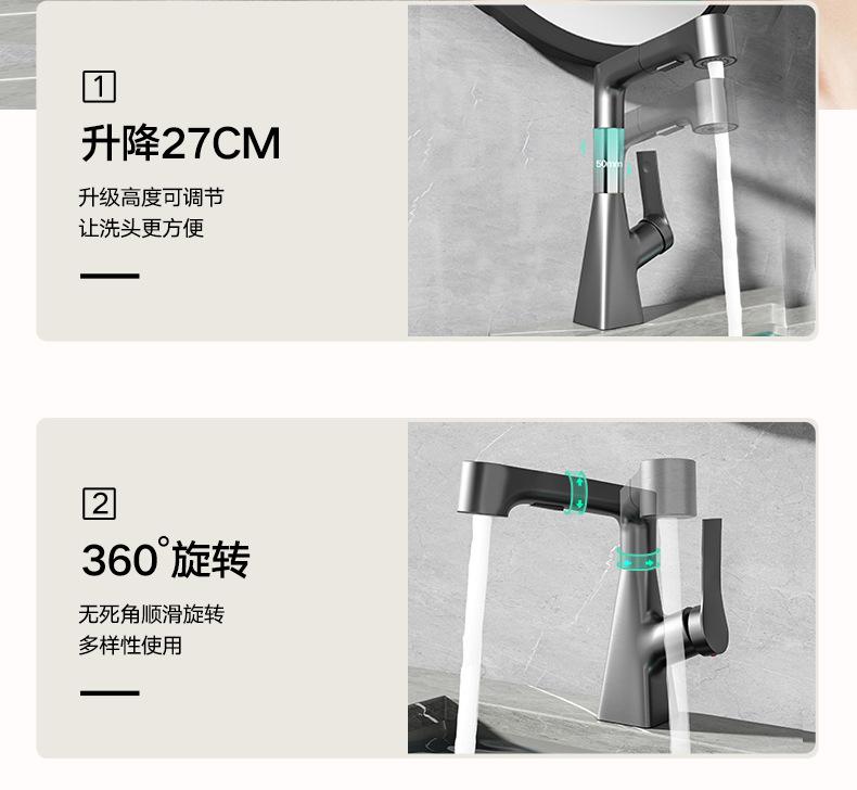 Grifo de lavabo extraíble elevable, todo de cobre, lavabo de encimera con agua fría y caliente, lavabo, mueble de baño, inodoro