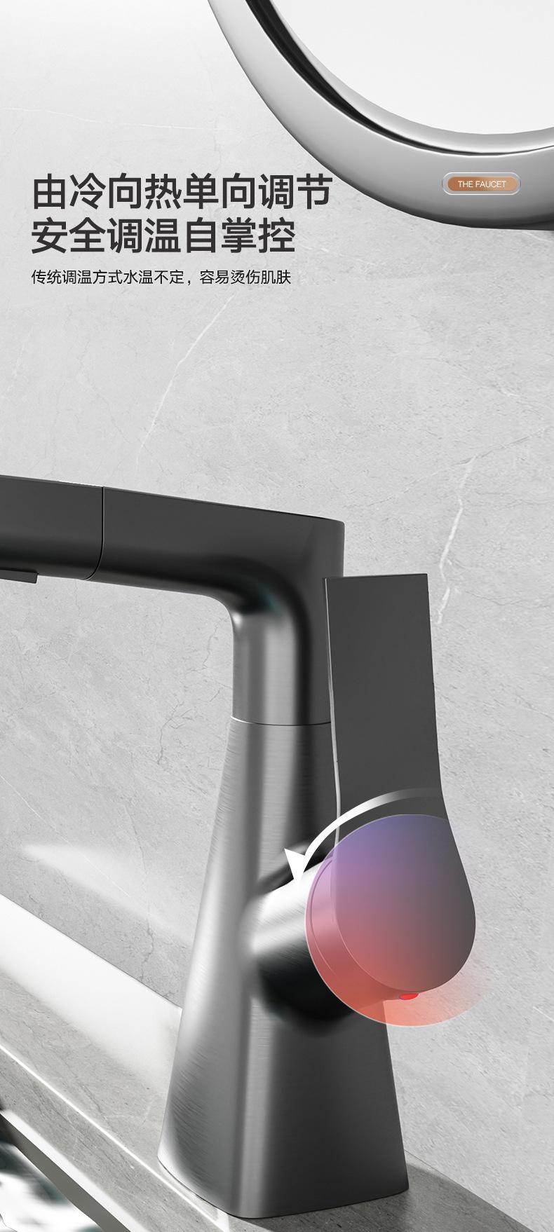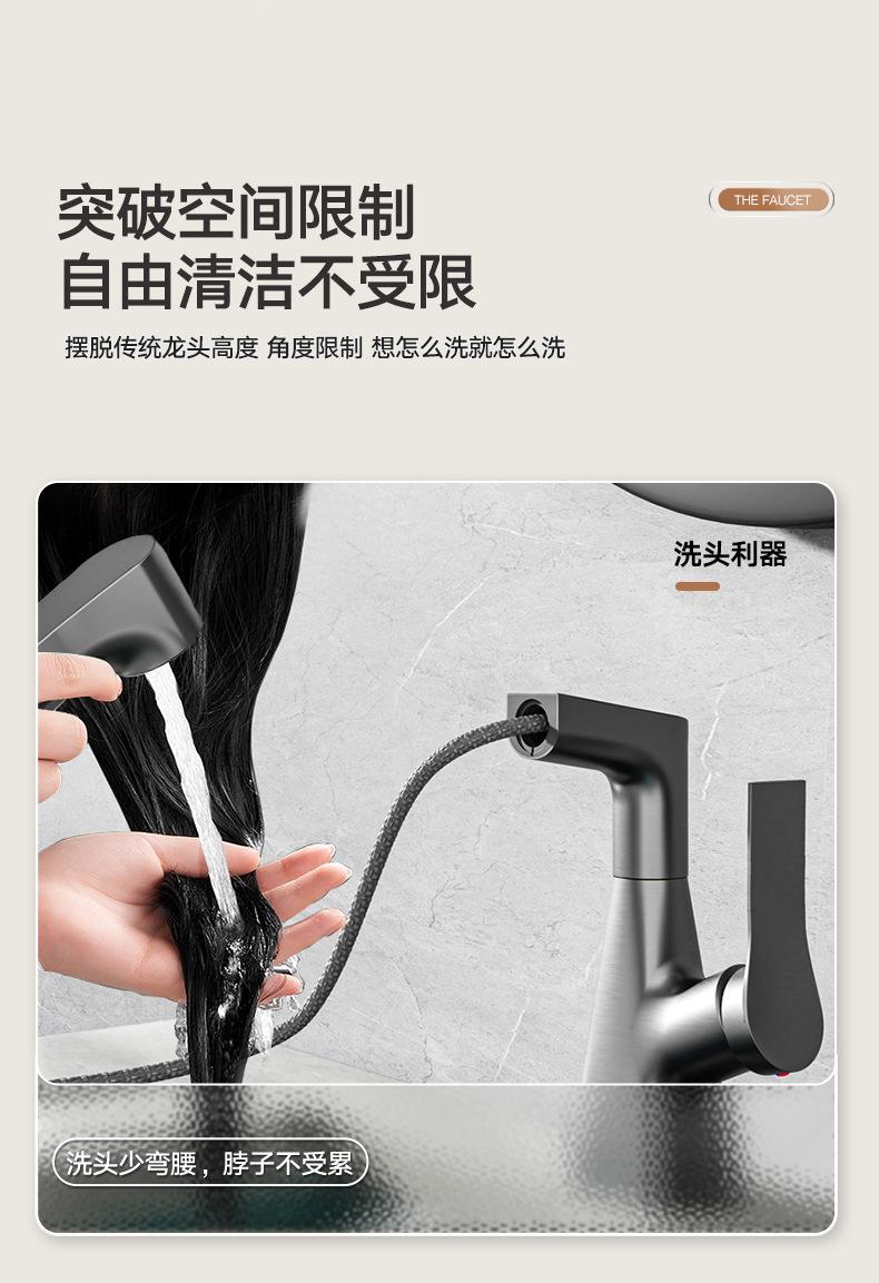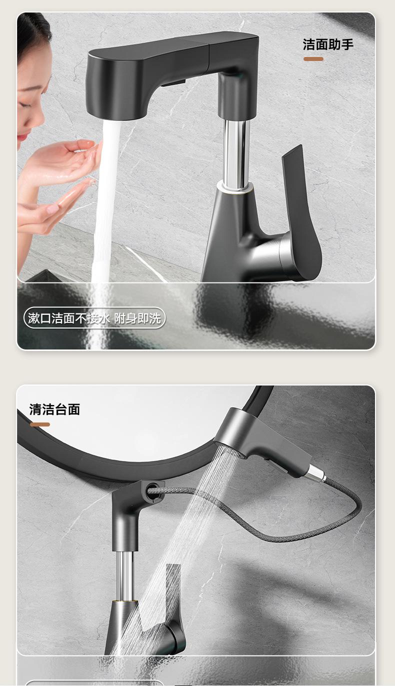 Grifo de lavabo extraíble elevable, todo de cobre, lavabo de encimera con agua fría y caliente, lavabo, mueble de baño, inodoro