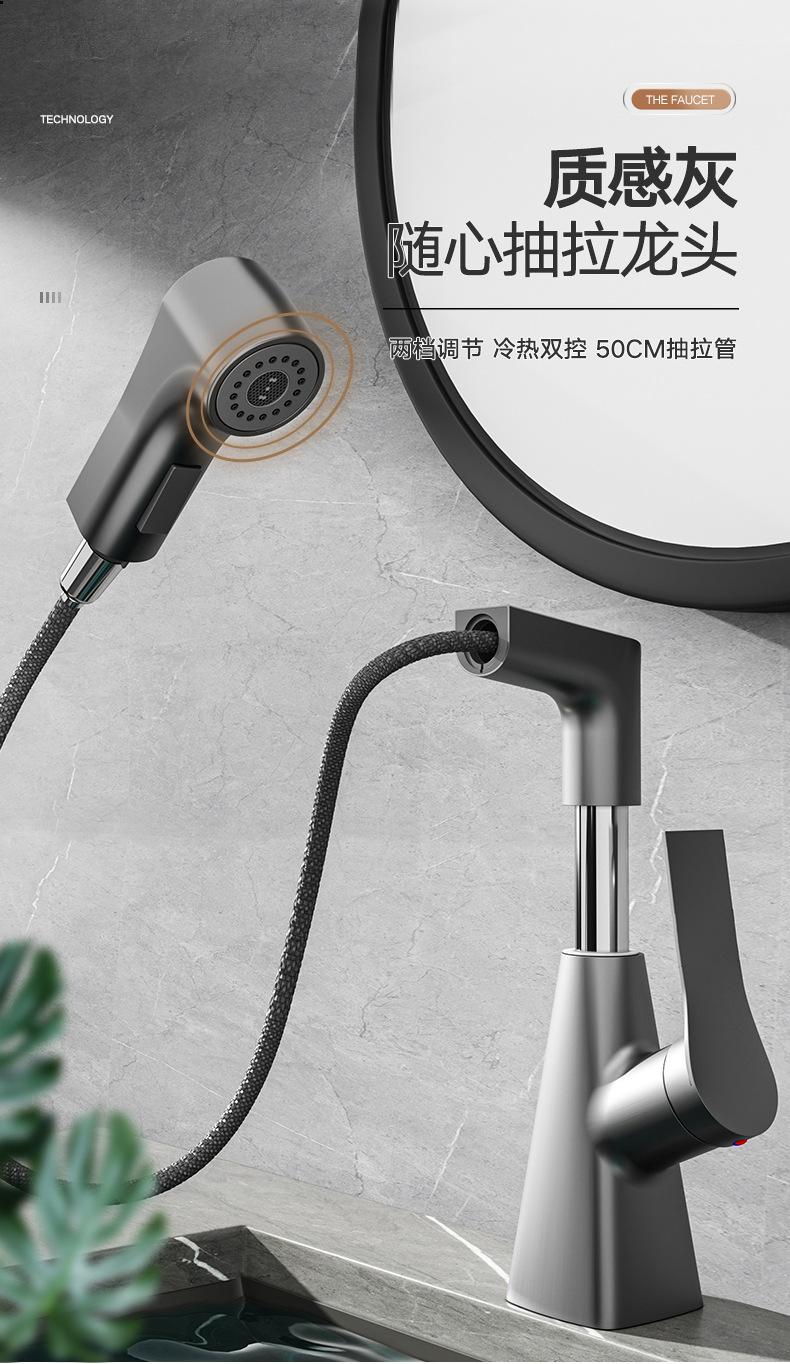 Gun ash [lifting pull] cold and hot faucet to send 80cm pipe