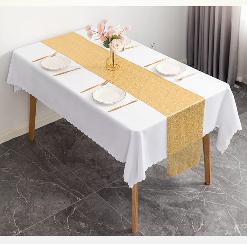 Mantel de mesa para boda de hotel al por mayor decoración navideña ins poliéster cuadrado lentejuelas con purpurina versión completa bordado lentejuelas camino de mesa