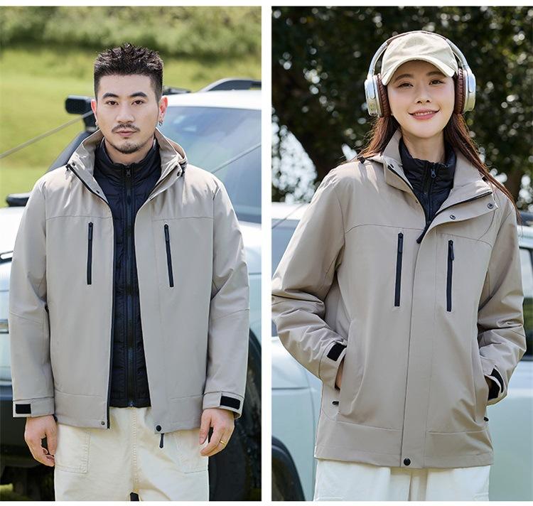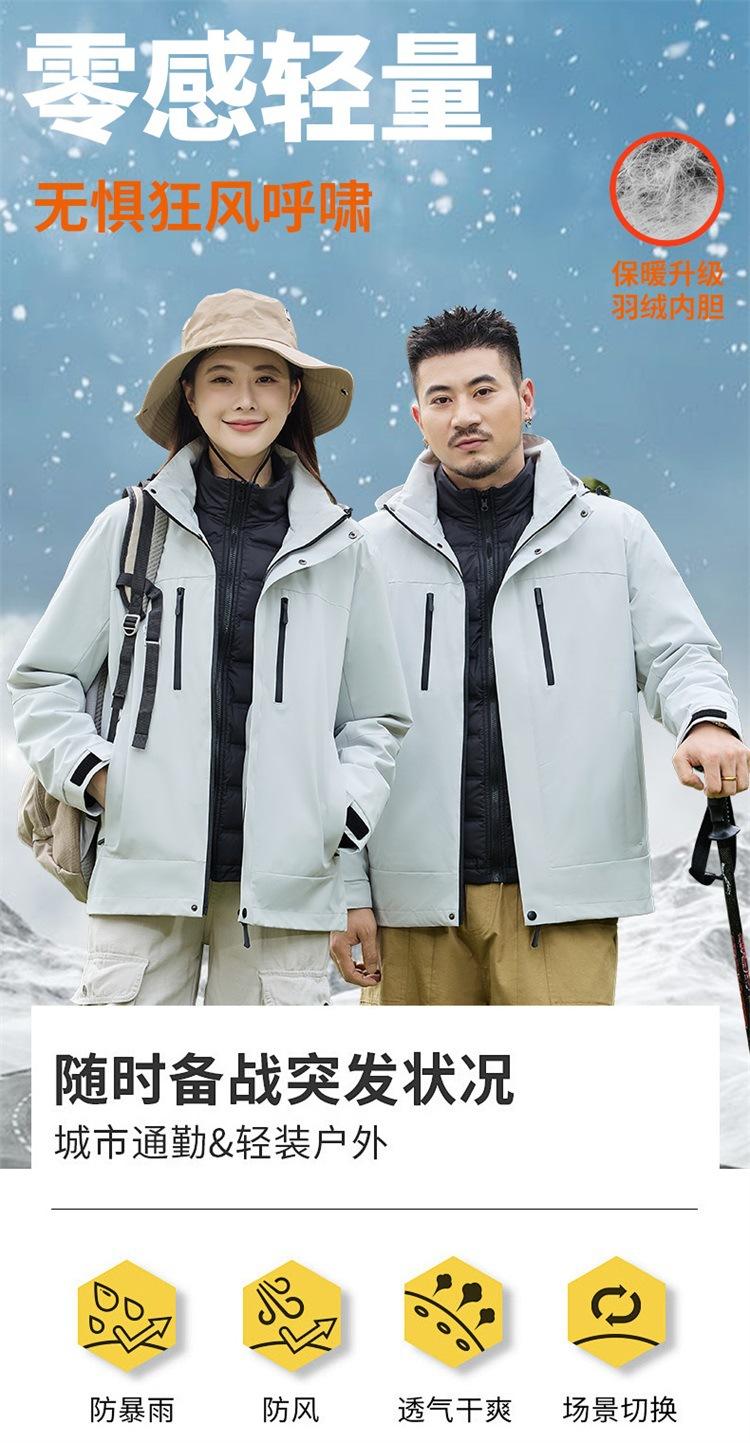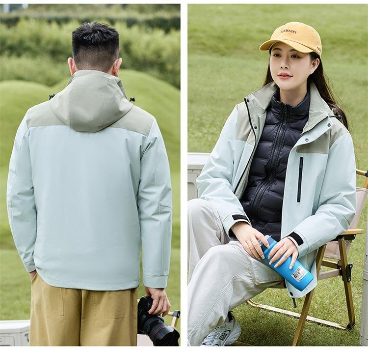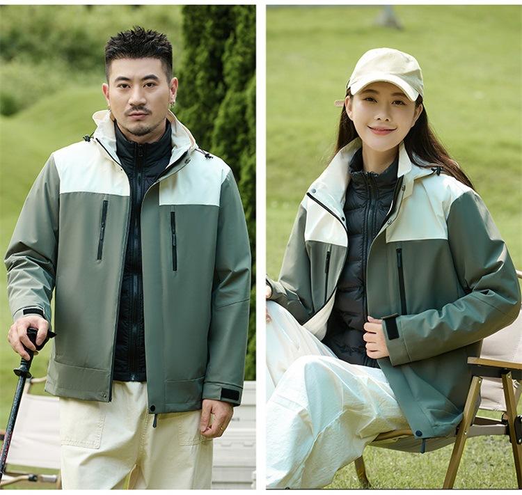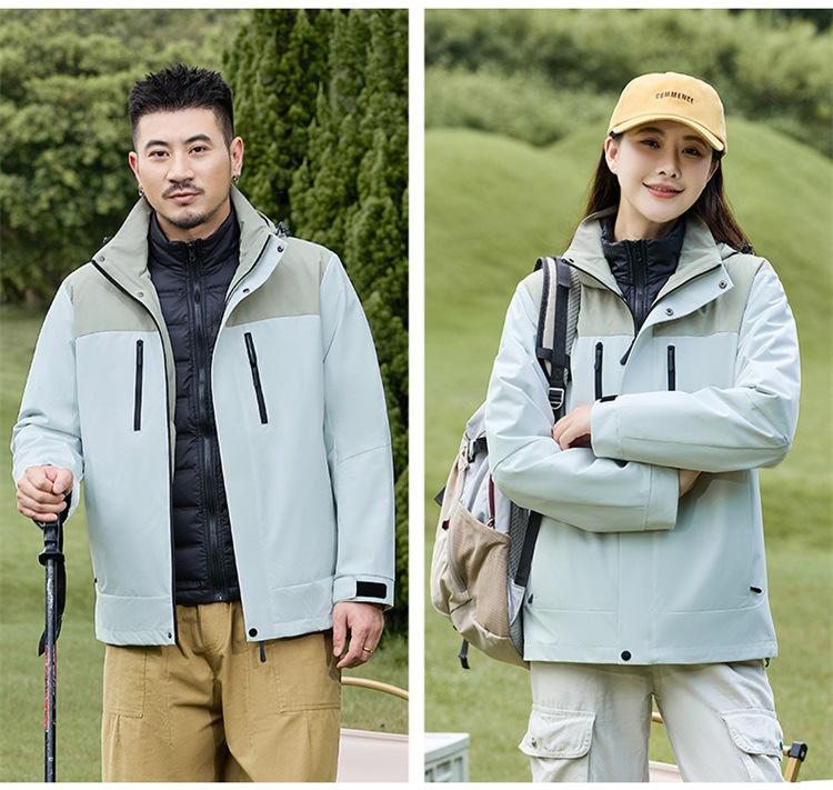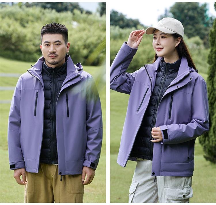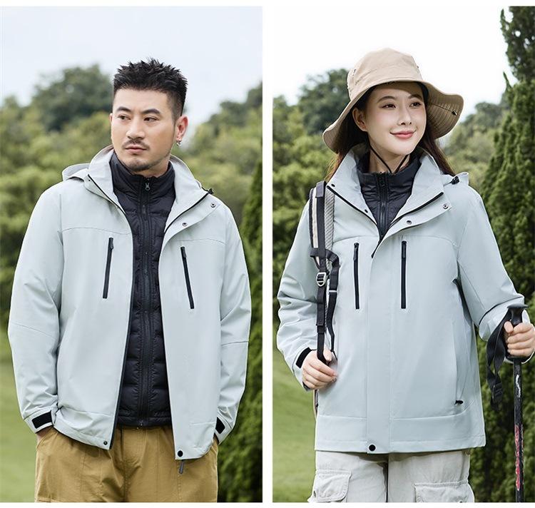 Ropa de asalto para exteriores para hombre y mujer tres en uno con forro de plumón, ropa de montañismo, ropa de esquí, impermeable, cortavientos, cálida
