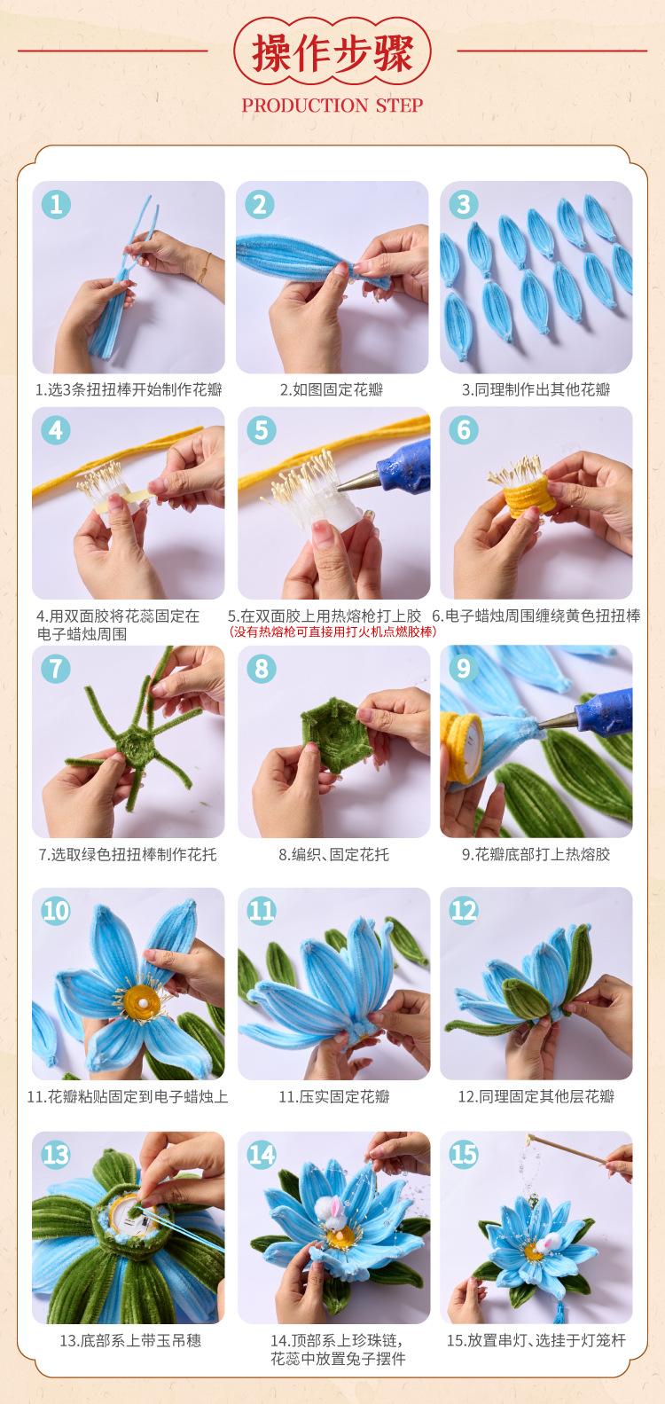 Año Nuevo Festival de Primavera Día de Año Nuevo Año de la Serpiente Palo Giratorio Linterna de Loto Materiales para Manualidades DIY para Niños Linterna de Loto Linterna de Flores