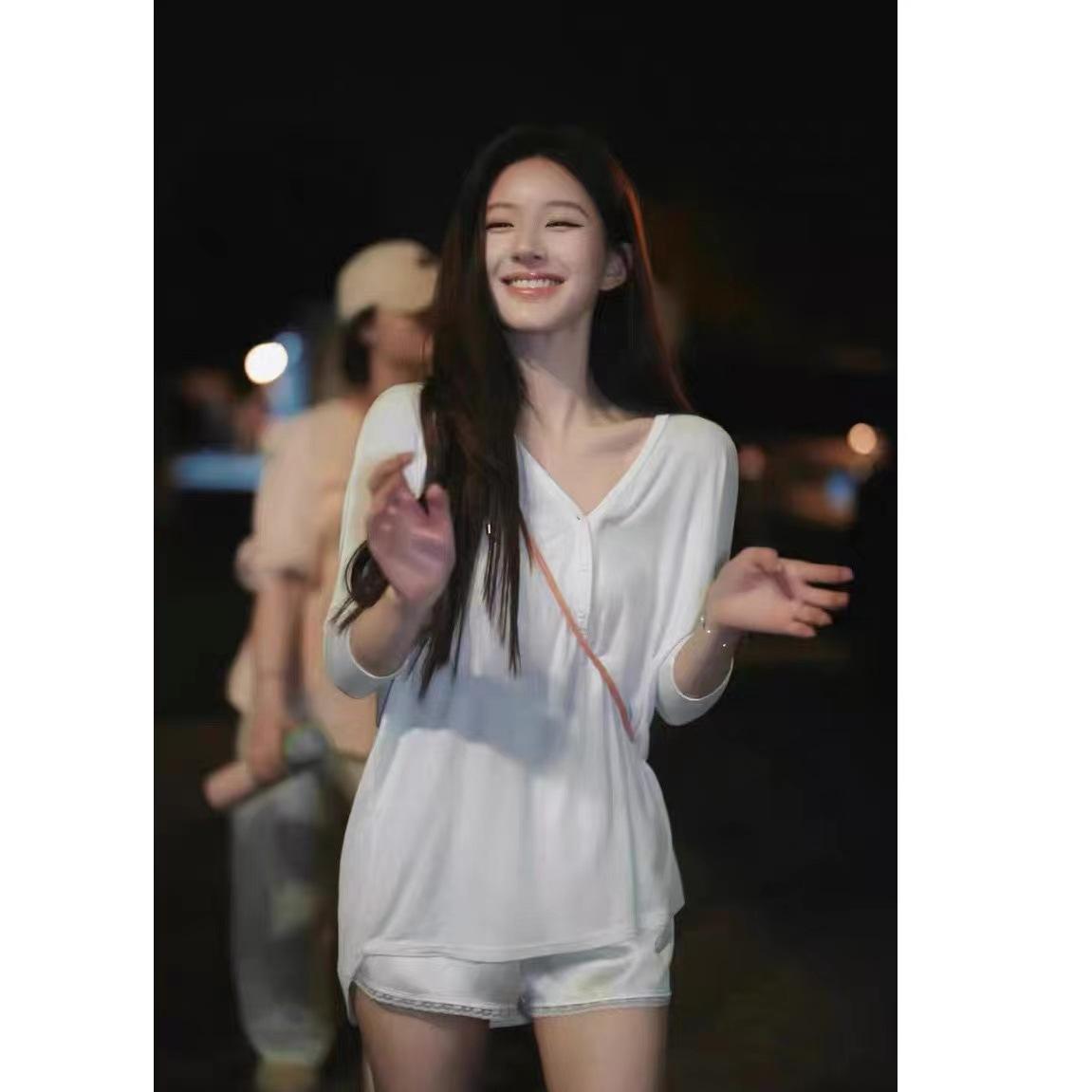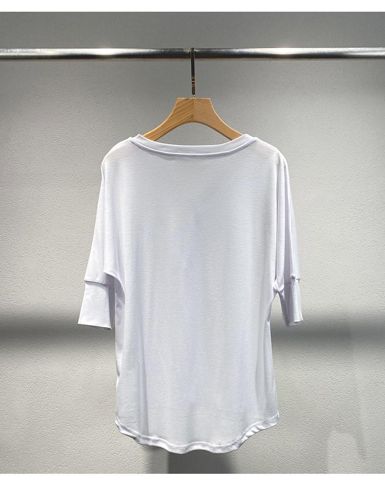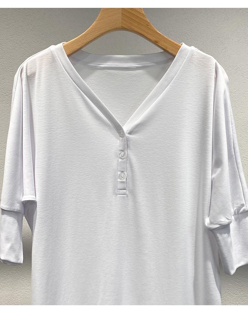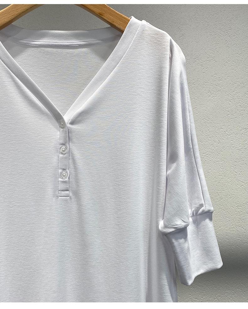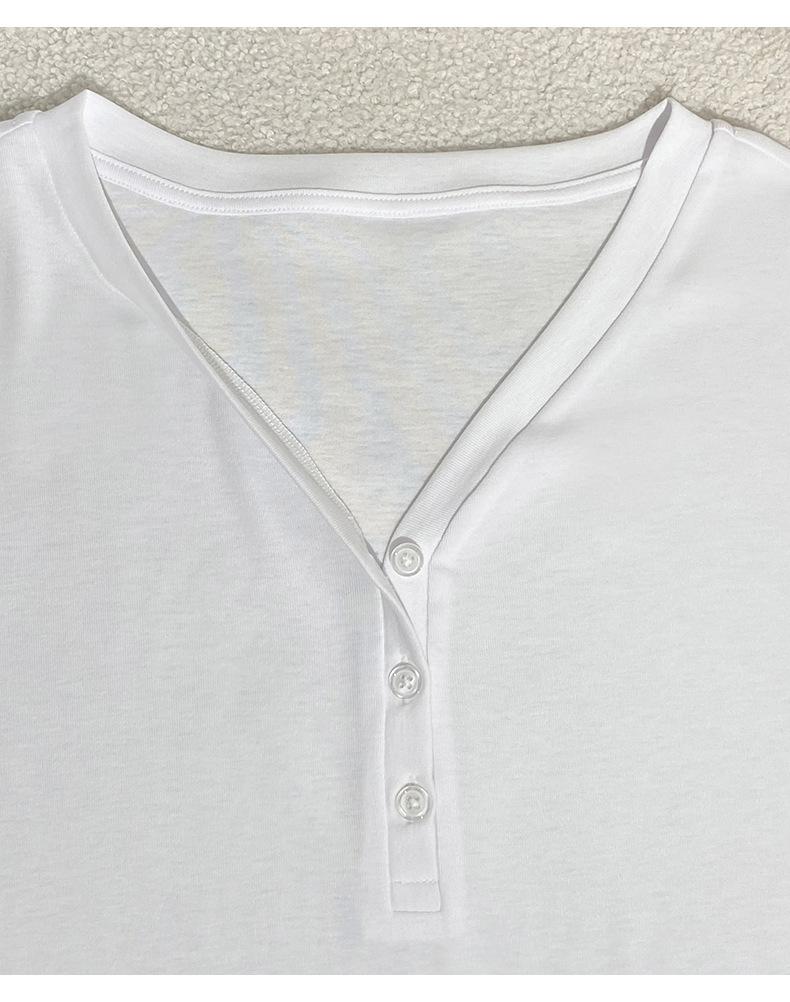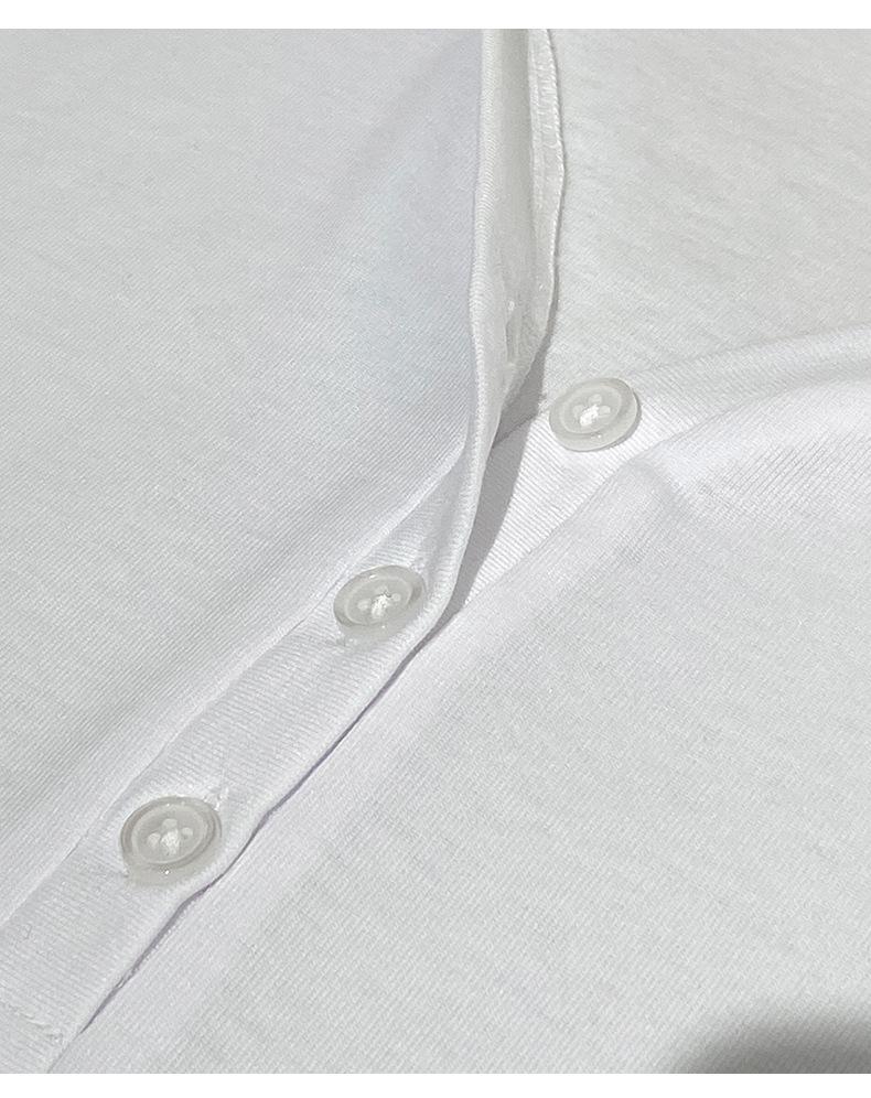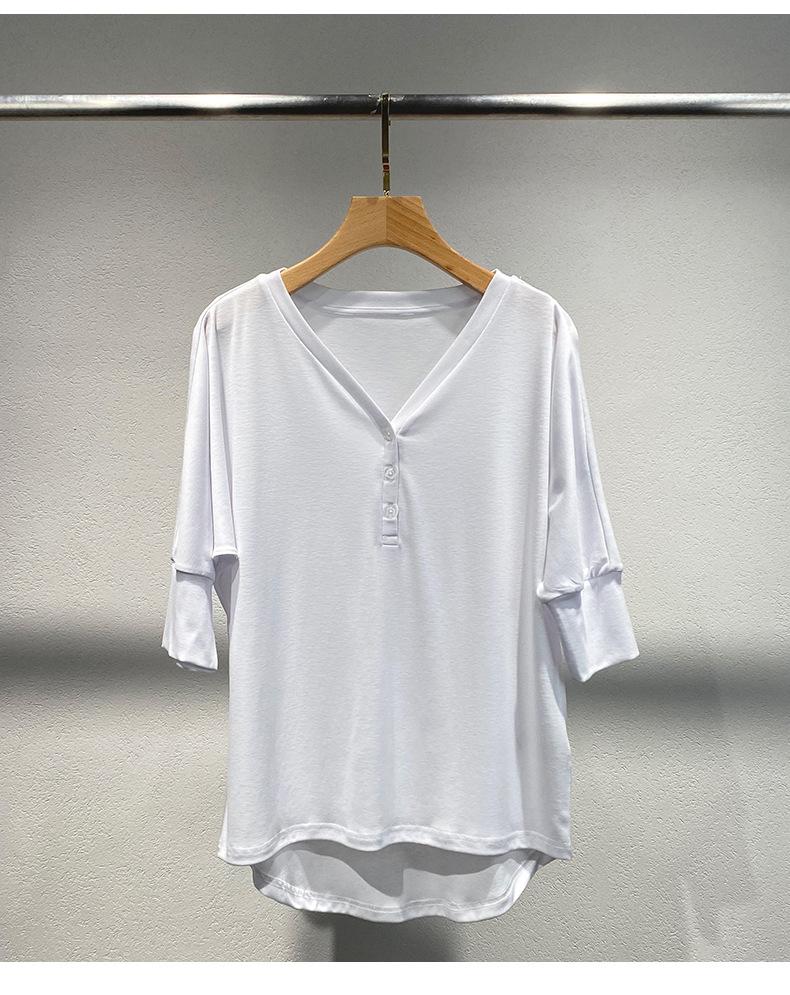 Nicho 2024 Principios de Otoño Nuevo Blanco Casual Suelto Camiseta Simple y Versátil Top de Manga Corta con Botones para Mujer