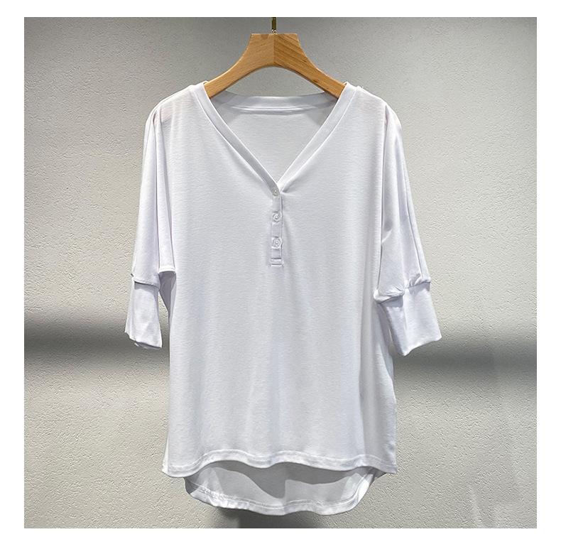 Compra Nicho 2024 Principios de Otoño Nuevo Blanco Casual Suelto Camiseta Simple y Versátil Top de Manga Corta con Botones para Mujer al por mayor en Joom.pro