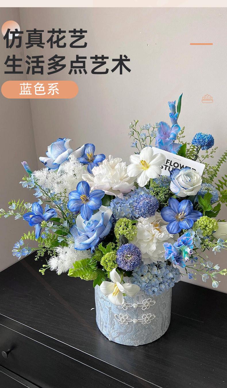 Arreglo floral artificial azul para boda, arreglo floral Luyin, decoración de flores falsas para hotel, sala de estar, flores artificiales, flores falsas