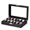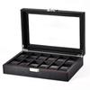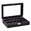Caja de almacenamiento para reloj de cuero con textura de fibra de carbono de 12 posiciones |