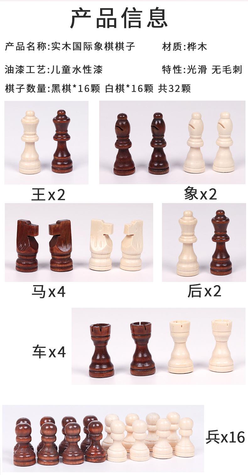 Piezas de ajedrez de madera maciza únicas extranjeras transfronterizas, accesorios de ajedrez de 1 2 3 pulgadas, ajedrez para niños