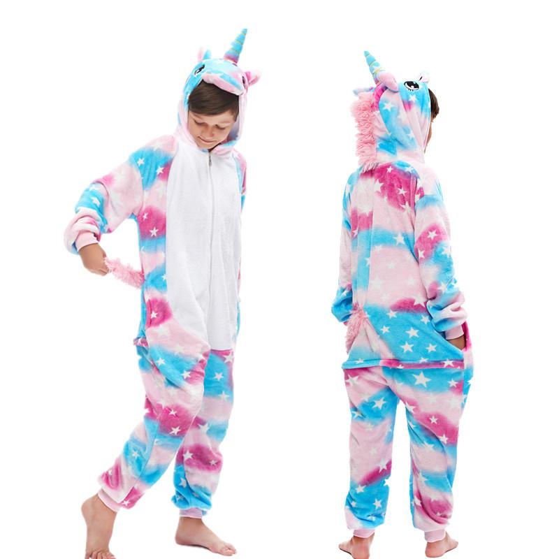 Pijamas de franela de invierno con diseño de unicornio Tianma, pijamas siameses de dibujos animados para niños, ropa de hogar de dinosaurios al por mayor