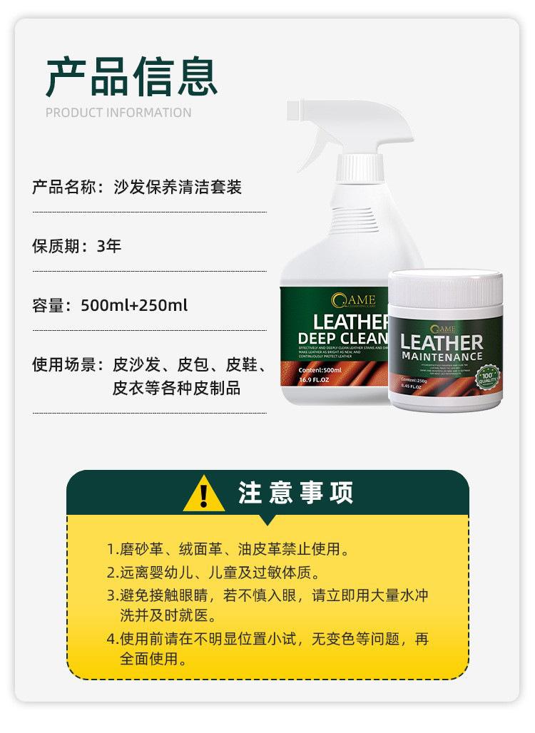 Cleaner 500ml*1, Nursing cream 250ml*1, Cleaning and maintenance kit*1, Cleaner 500ml*1 (including cleaning to...