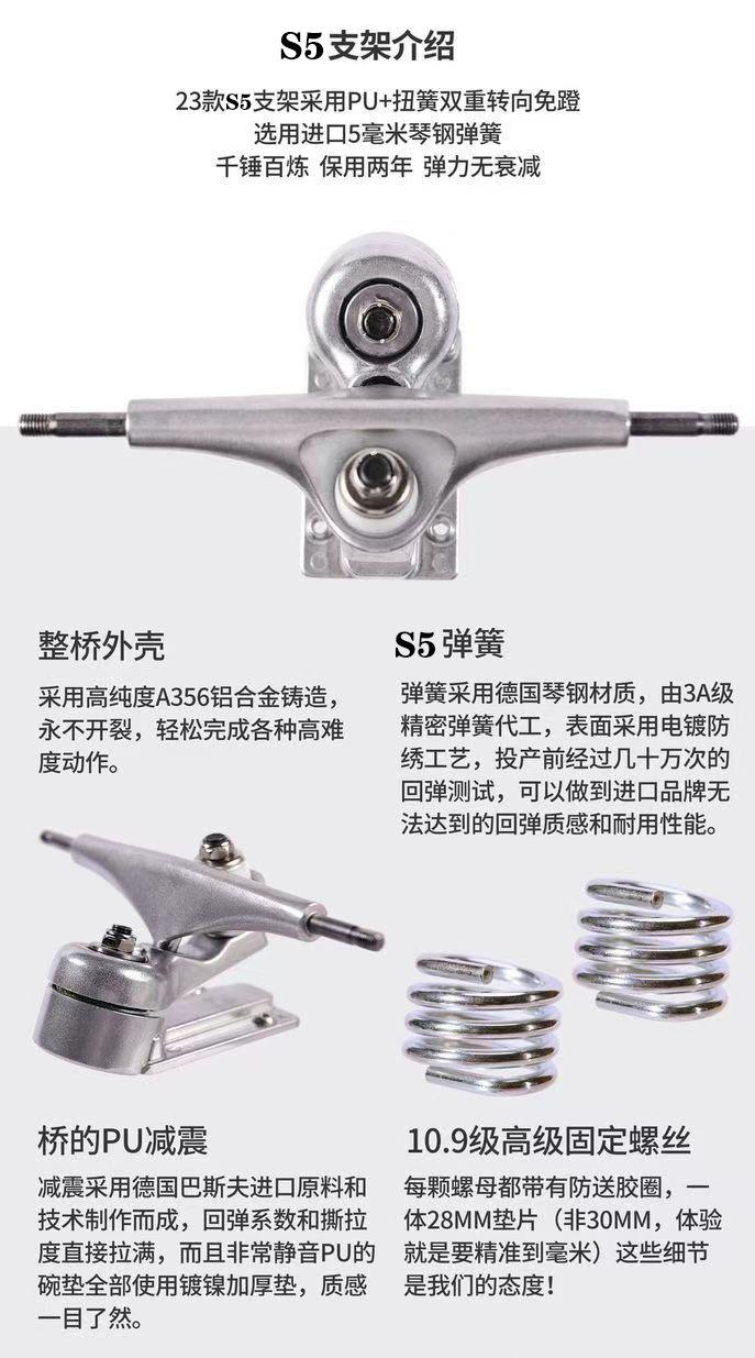 Tabla de surf de carretera sin pedales, patineta S5 con soporte de puente de resorte, para adolescentes y adultos, tabla de surf profesional para tierra.