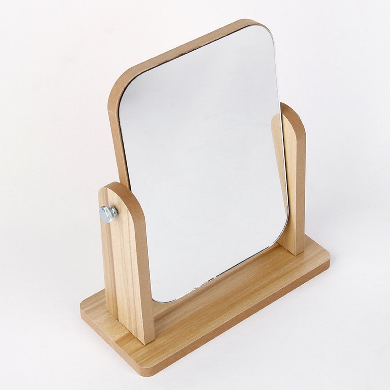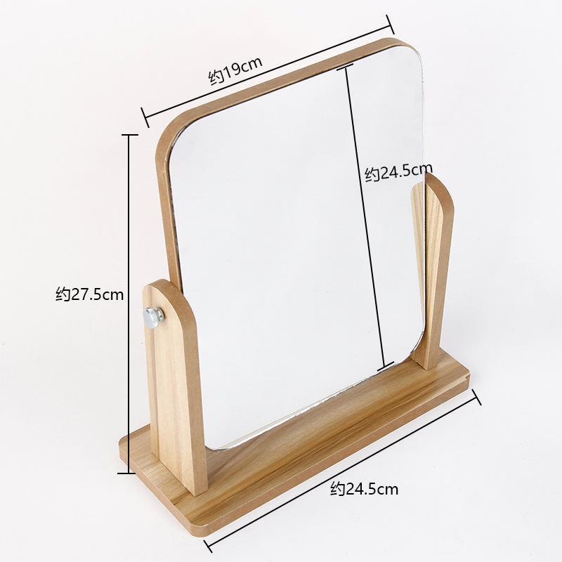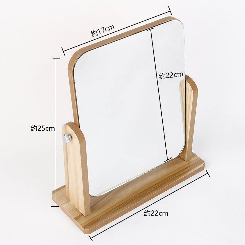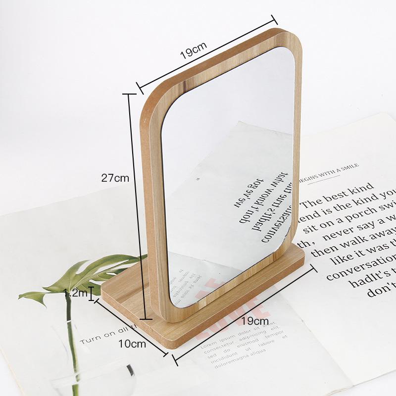 Espejo de Maquillaje de Escritorio Giratorio de Madera de Alta Definición Portátil Estilo Ins Espejo de Maquillaje Tamaño Estudiante Espejo de Madera Giratorio