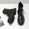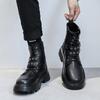 Botas Martin para Hombre de Caña Alta Estilo Británico con Cremallera Lateral Botas de Cuero Modernas Invierno Cálido Caña Media Negro Ropa de Trabajo Casual Botas para Hombre