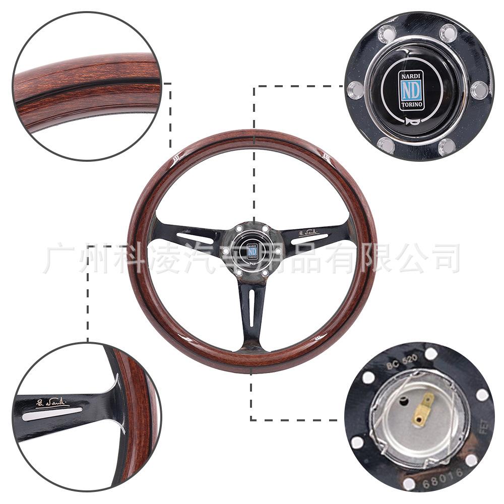 Volante de modificación de coche galvanizado, volante universal ND de 14 pulgadas, estilo retro con veta de madera de melocotón.