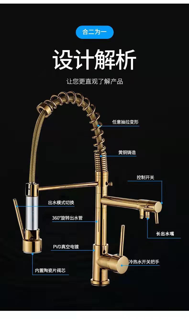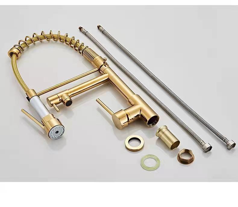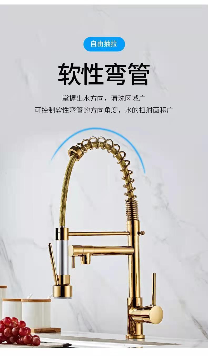 Grifo de cocina extraíble transfronterizo para lavabo de agua fría y caliente, fregadero, grifo extraíble giratorio con resorte