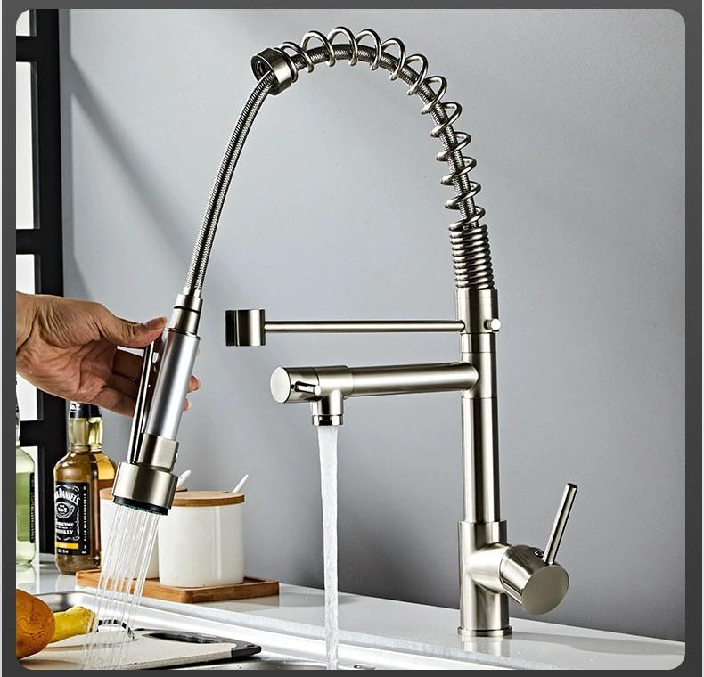 Suministro Transfronterizo Acero Inoxidable Cocina Extraíble Grifo de Resorte Fregadero de Cocina Grifo Frío y Caliente
