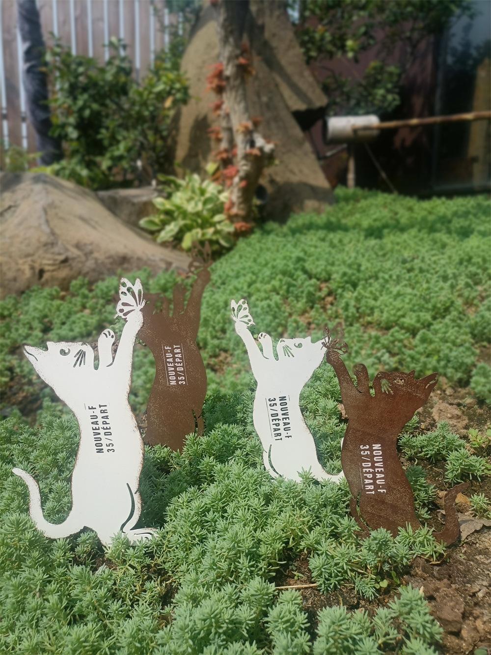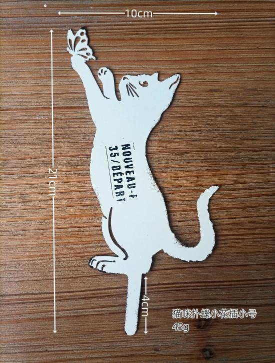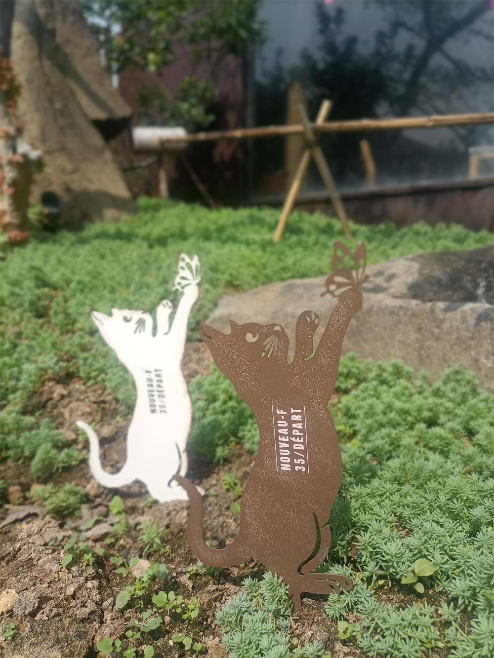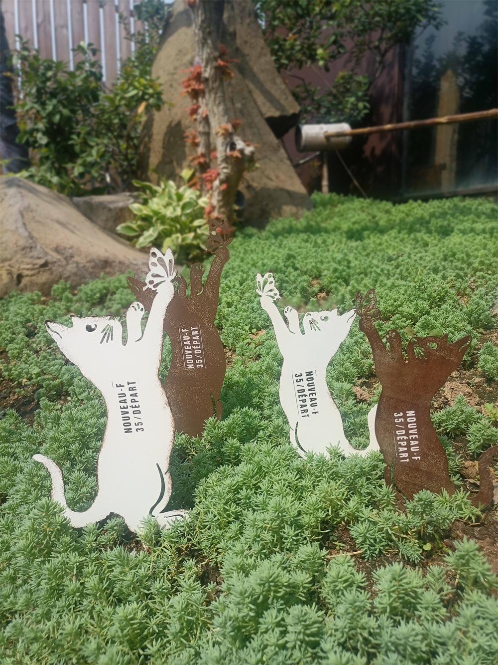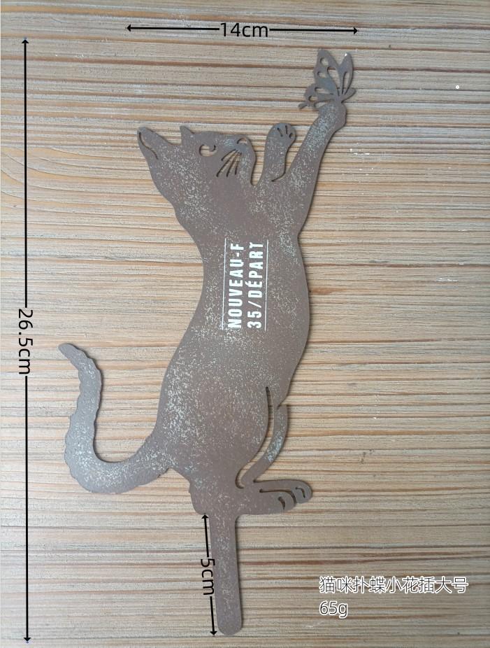 Exportación al exterior: figura original de hierro forjado con forma de gato y mariposa, ideal para arreglos florales pequeños. Perfecta para patios de villas, micro paisajes, balcones y decoración de bonsáis.