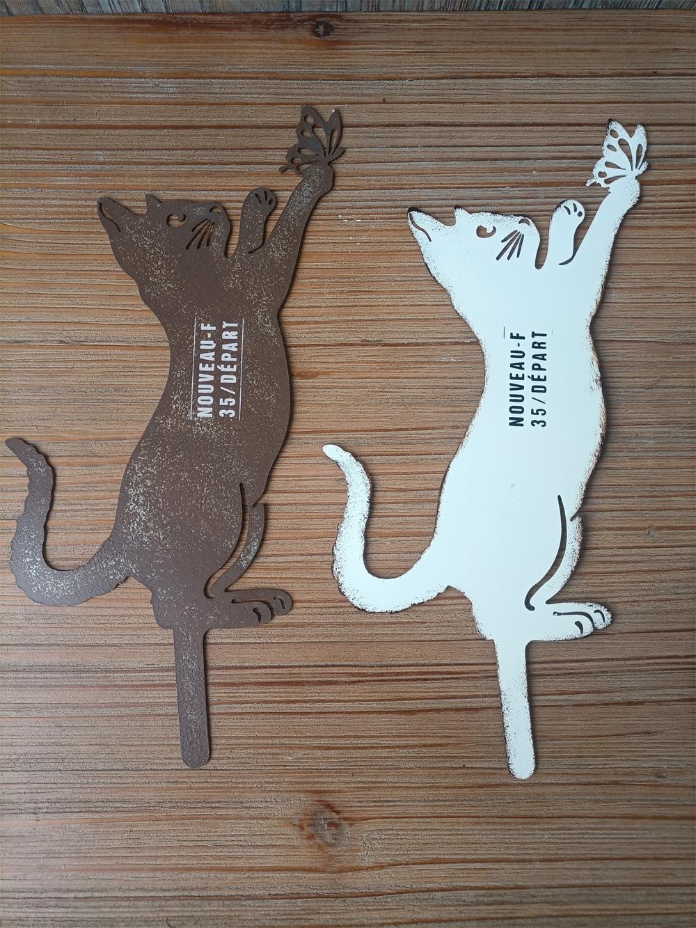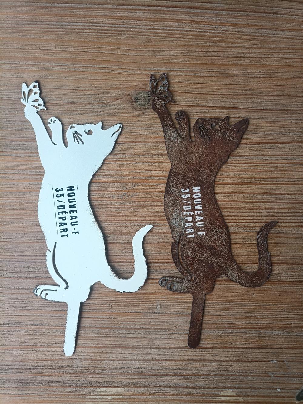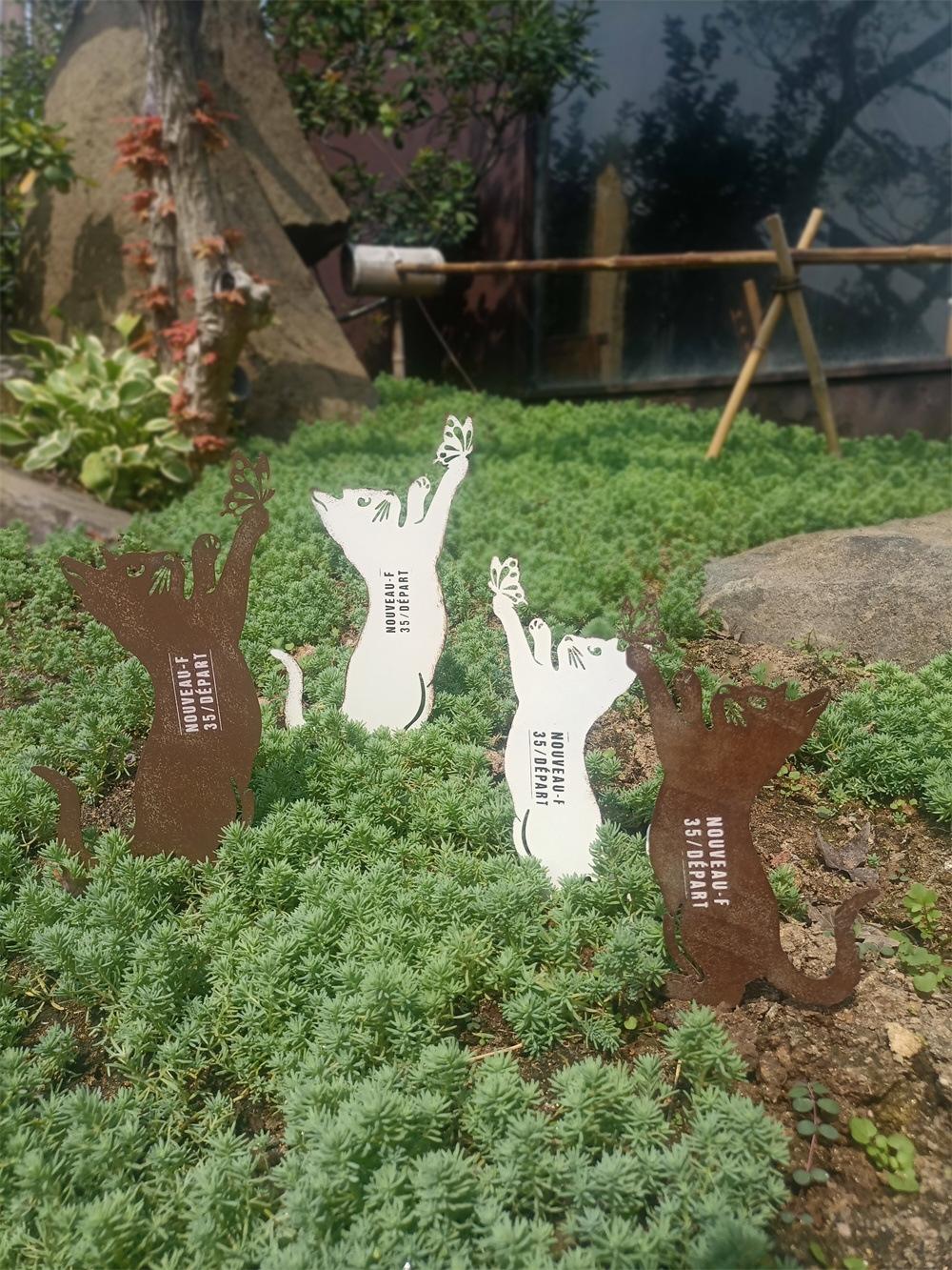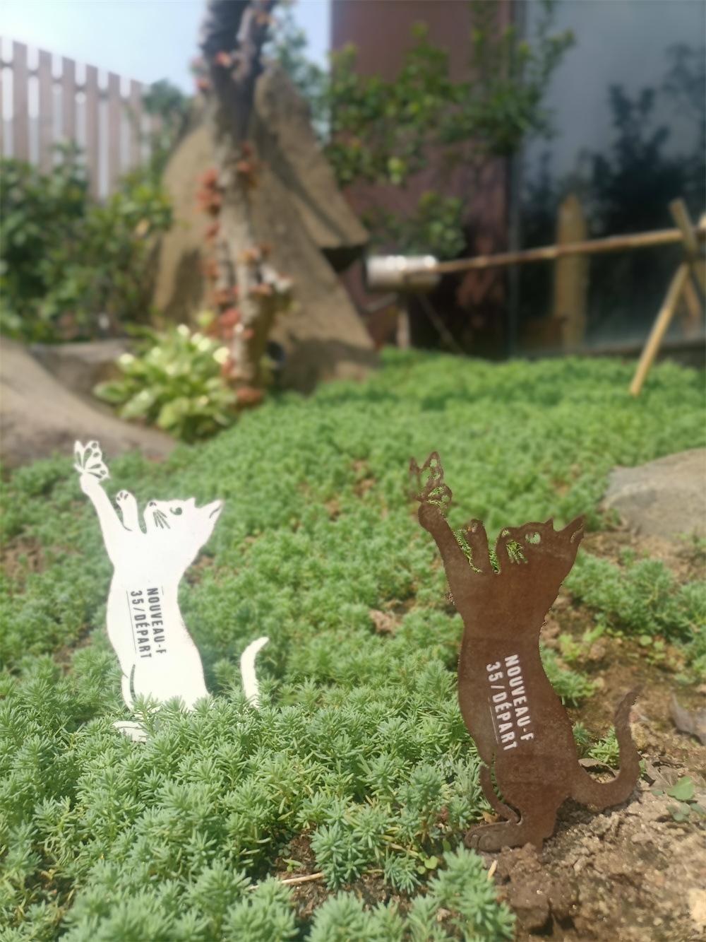 Exportación al exterior: figura original de hierro forjado con forma de gato y mariposa, ideal para arreglos florales pequeños. Perfecta para patios de villas, micro paisajes, balcones y decoración de bonsáis.