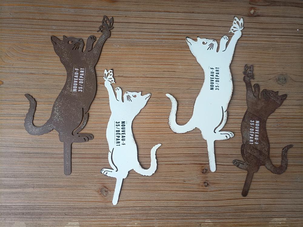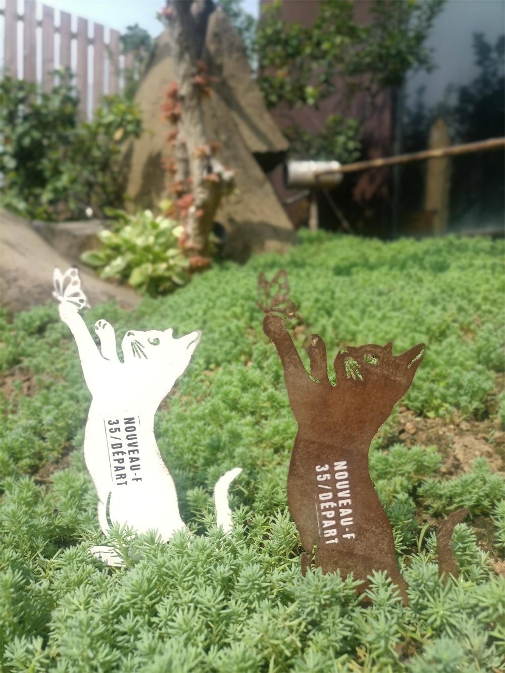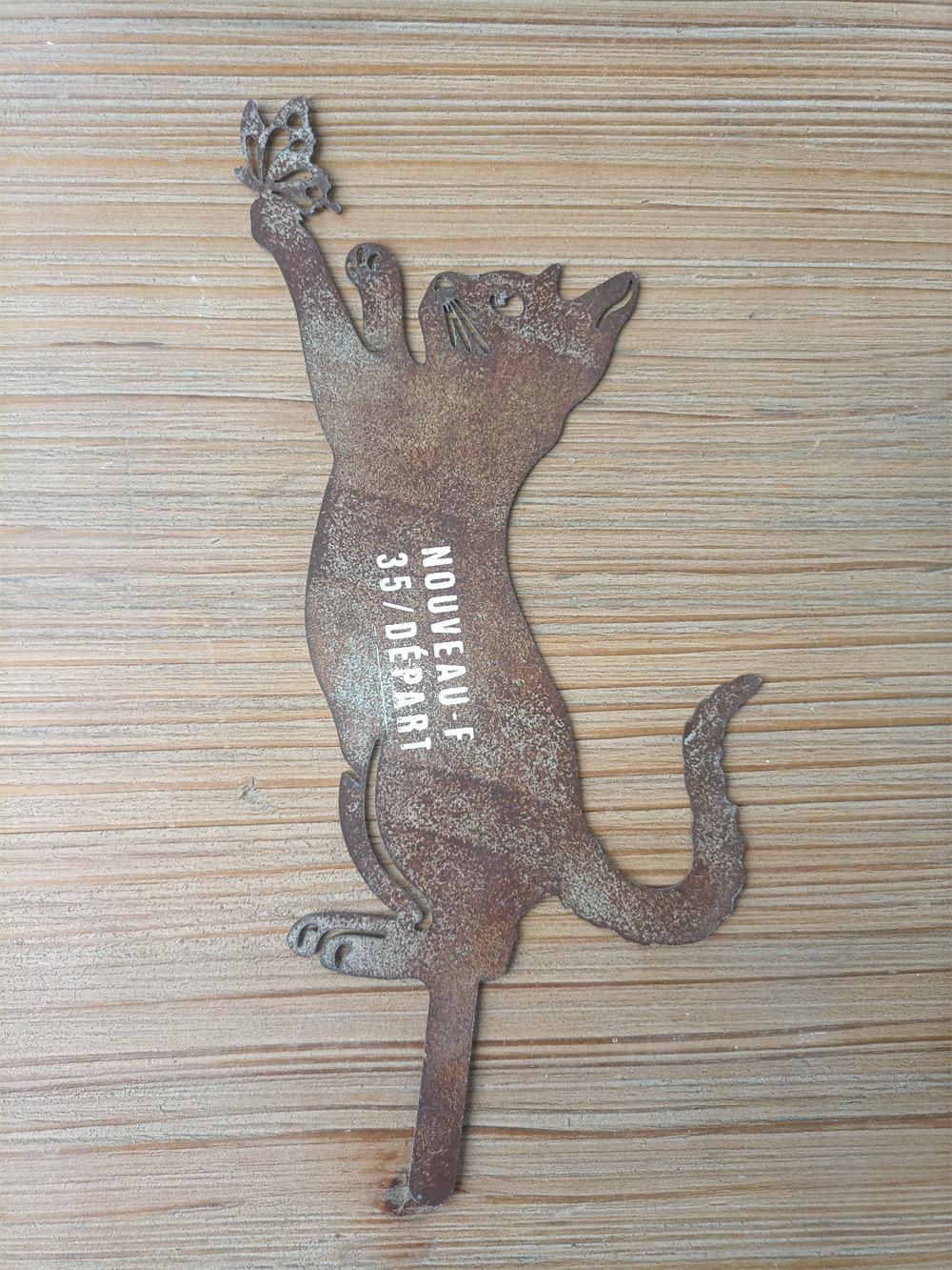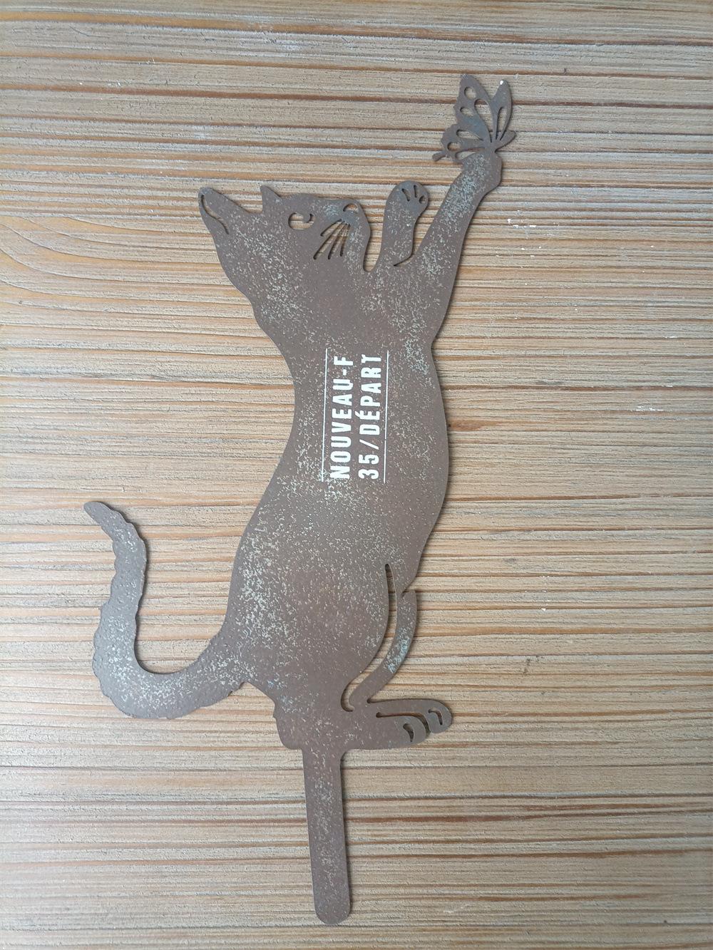 Exportación al exterior: figura original de hierro forjado con forma de gato y mariposa, ideal para arreglos florales pequeños. Perfecta para patios de villas, micro paisajes, balcones y decoración de bonsáis.