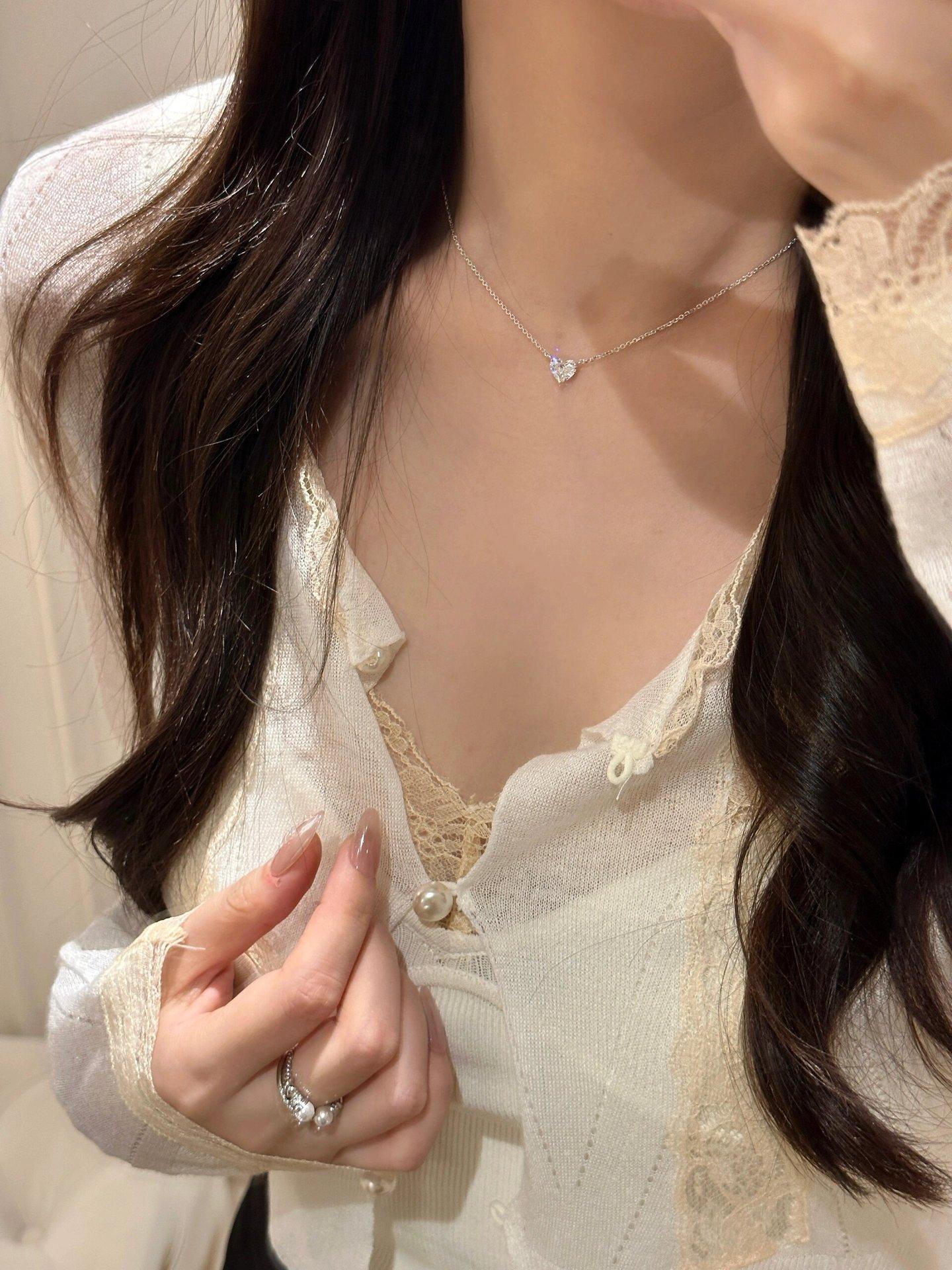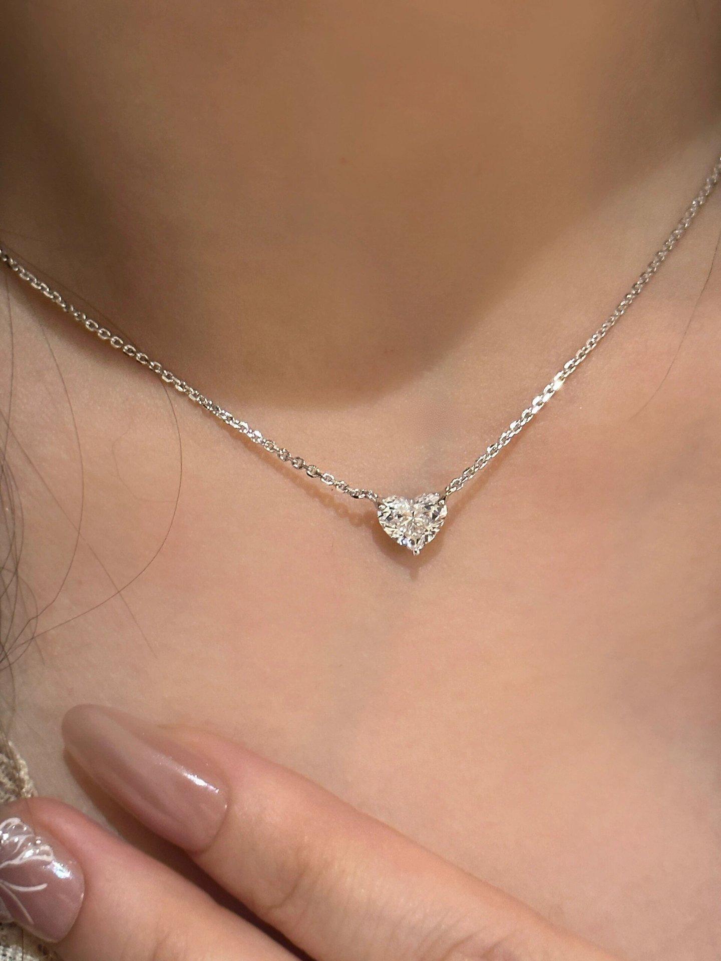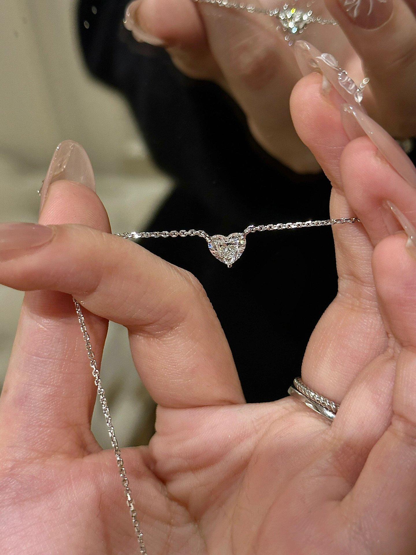 Colección de collar clásico de un solo diamante en plata esterlina S925, cadena de clavícula de diamantes de alto carbono, simple y elegante, collar ligero de lujo apilado que combina con todo.