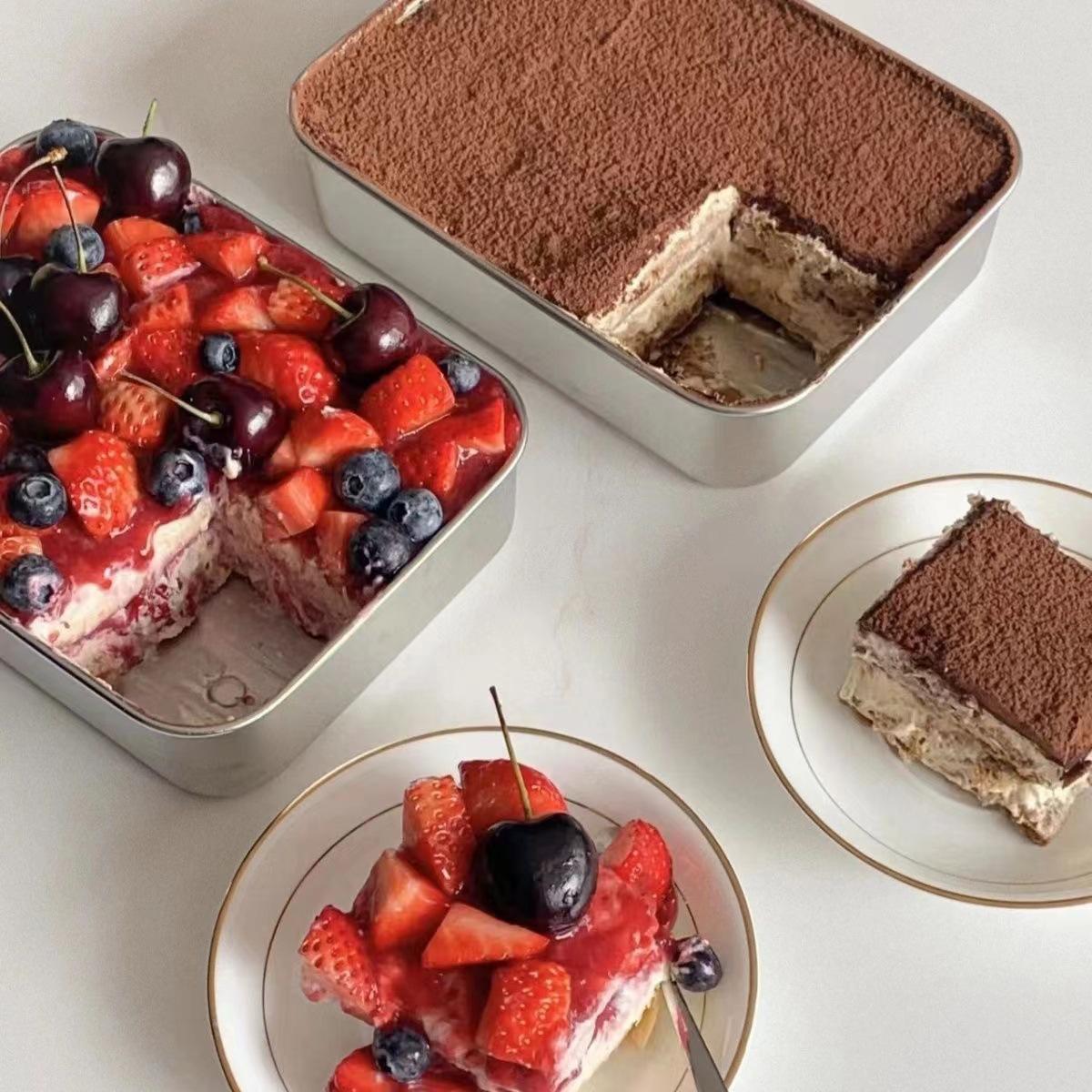 Plato cuadrado de acero inoxidable engrosado con tapa, rectangular, magnético, pequeño, para el hogar, bandeja para conservar la frescura, plato para exhibir toallas, cuenco cuadrado