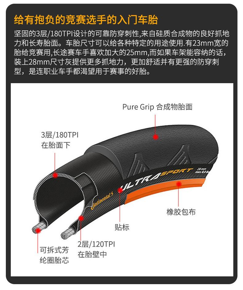 Neumático exterior de bicicleta de carretera de carreras Grand Sport de la marca de caballos alemana continental, neumático de acero para bicicleta