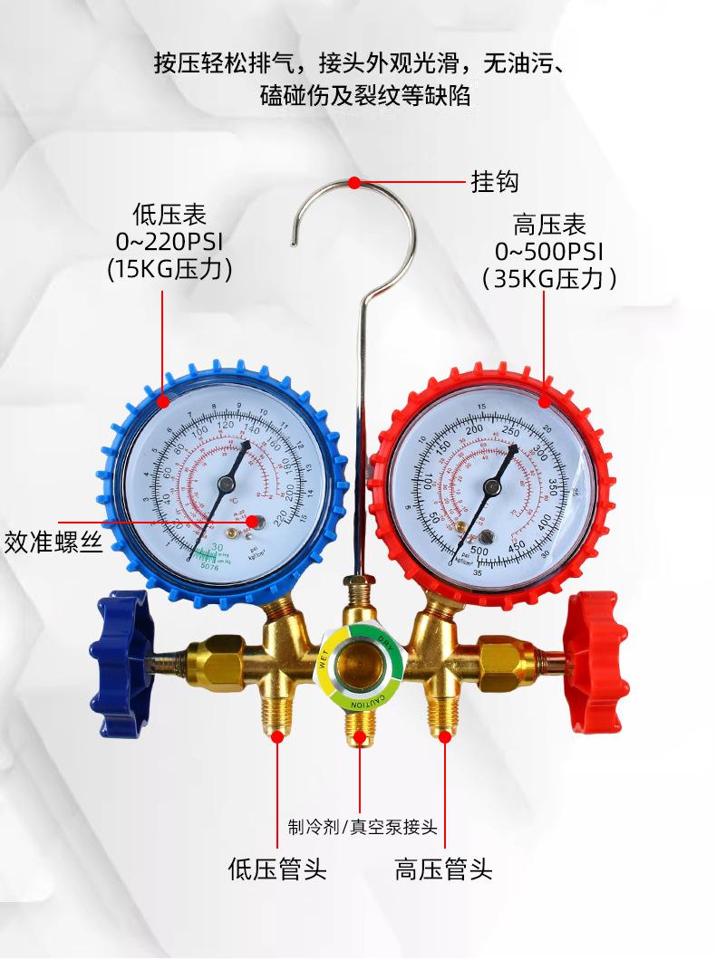 536g Manómetro de Presión de Aire Acondicionado Líquido Manómetro Doble Válvula R22 R134 Manómetro de Refrigerante Más Aire Acondicionado Doméstico para Automóvil Fluoruro