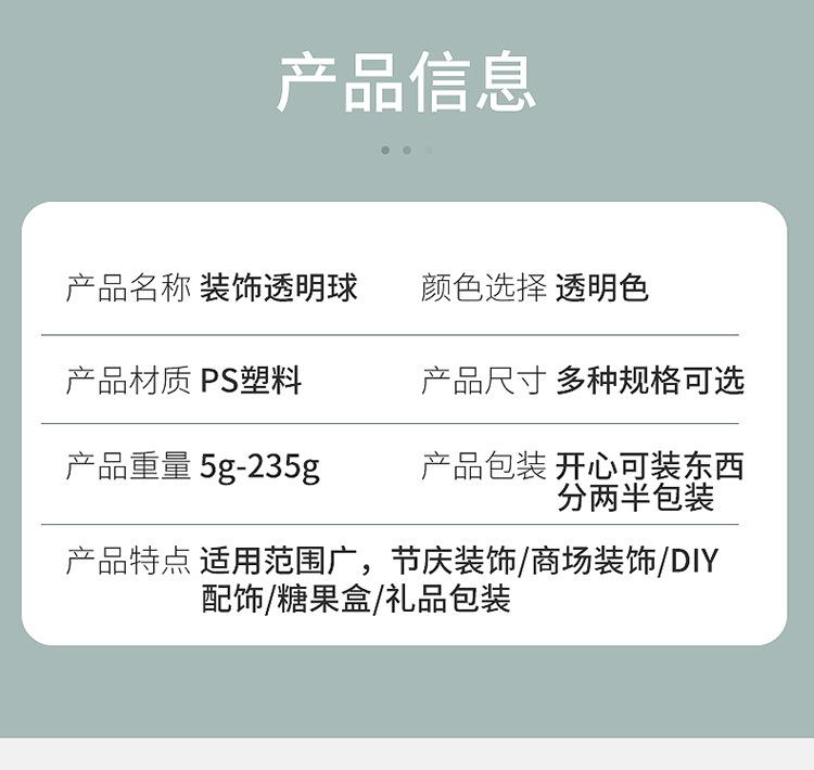 3-20Cmps Bola Transparente de Plástico Hueco Centro Comercial Festivo Creativo Bola de Navidad Bola Decorativa para Bodas