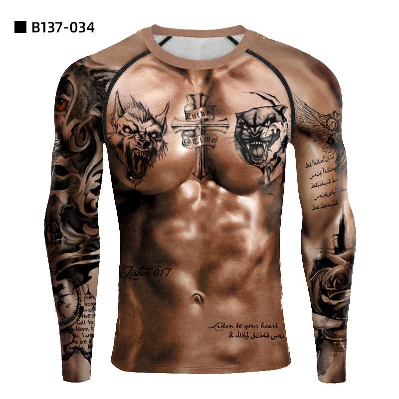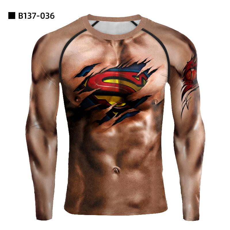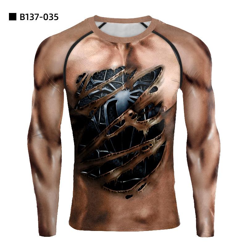 Nueva camiseta de anime 3D de venta caliente transfronteriza ajustada de manga larga para hombre para deportes y fitness de secado rápido